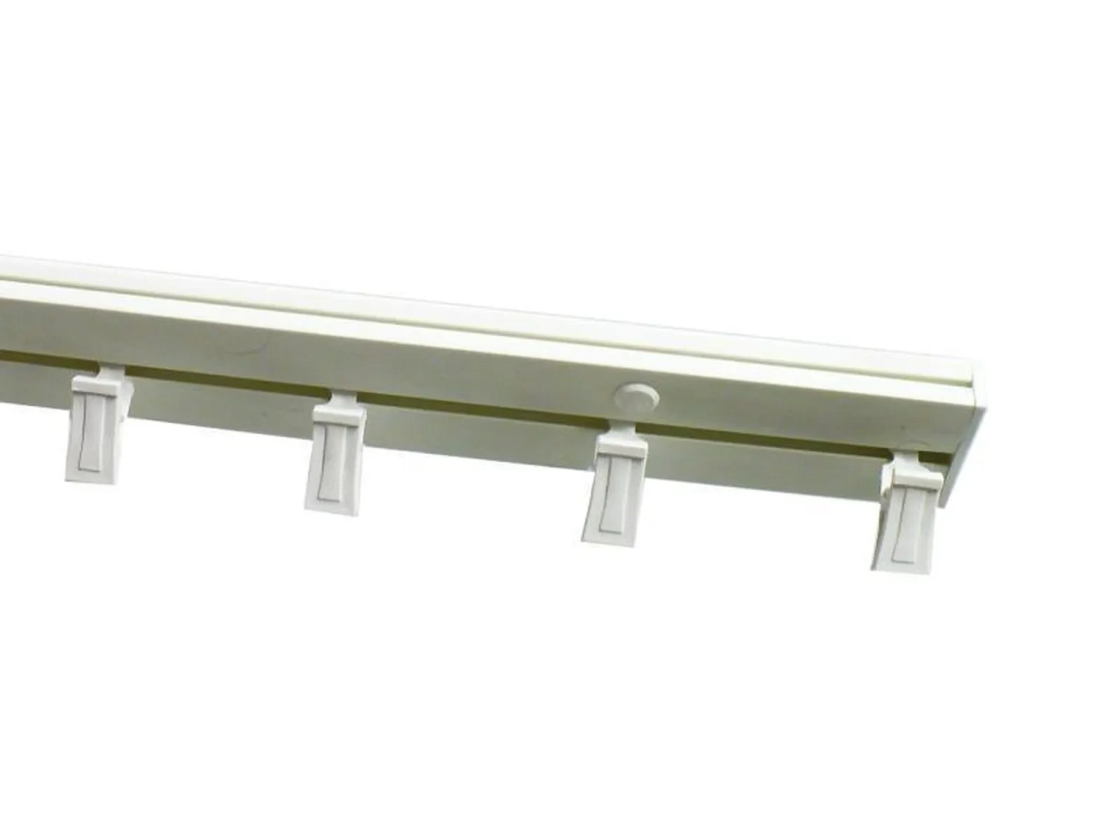 Egysíges műanyag karnissín, görgős függönyakasztó csipesszel vagy kampóval - 1 db 100 mm-re, 2 végzáró, csavarok és tiplik.