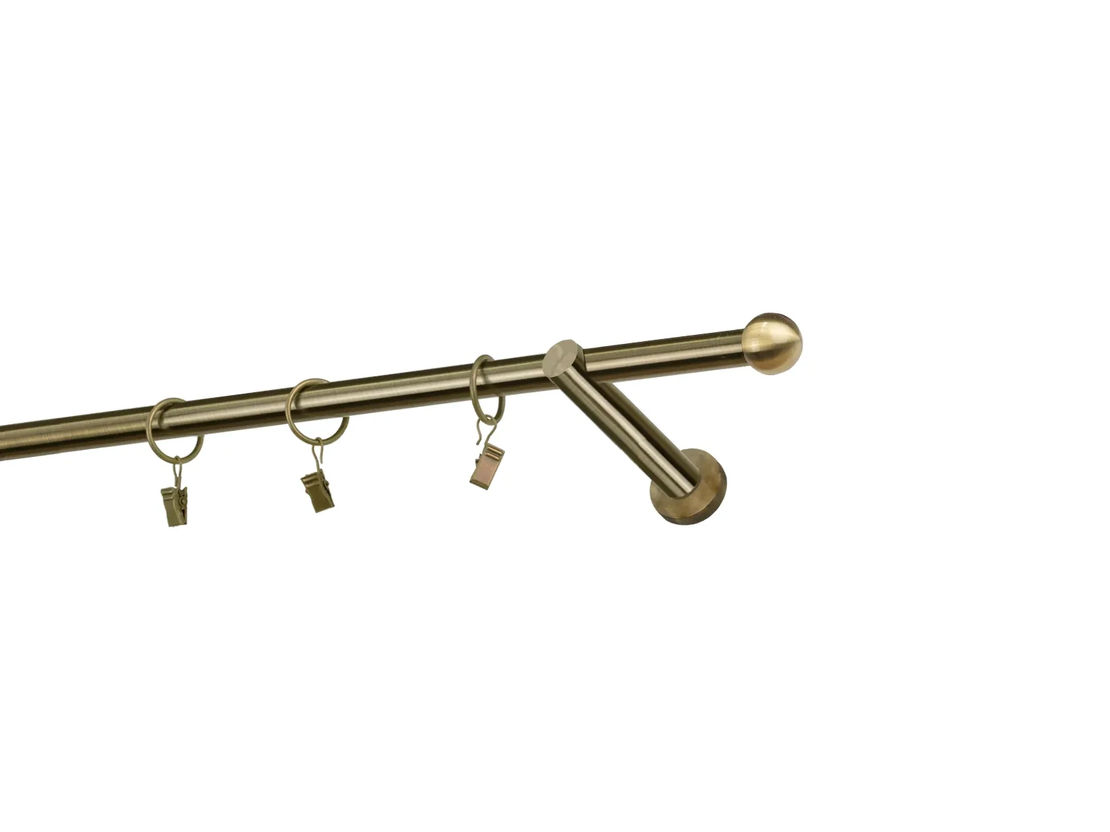 Felületkezelt egysoros fém függönykarnis antik (matt arany) árnyalat. Minőségi galvanizált fém függönykarnisok. A galvanizálás nagyobb felületi szilárdságot, nagyobb karcállóságot és sima felületet biztosít. Készletként szállítjuk.