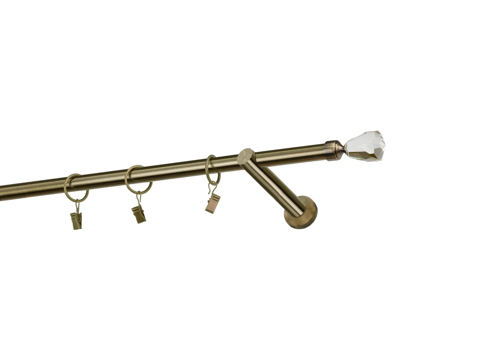 Felületkezelt egysoros fém függönykarnis antik (matt arany) árnyalat. Minőségi galvanizált fém függönykarnisok. A galvanizálás nagyobb felületi szilárdságot, nagyobb karcállóságot és sima felületet biztosít. Készletként szállítjuk.