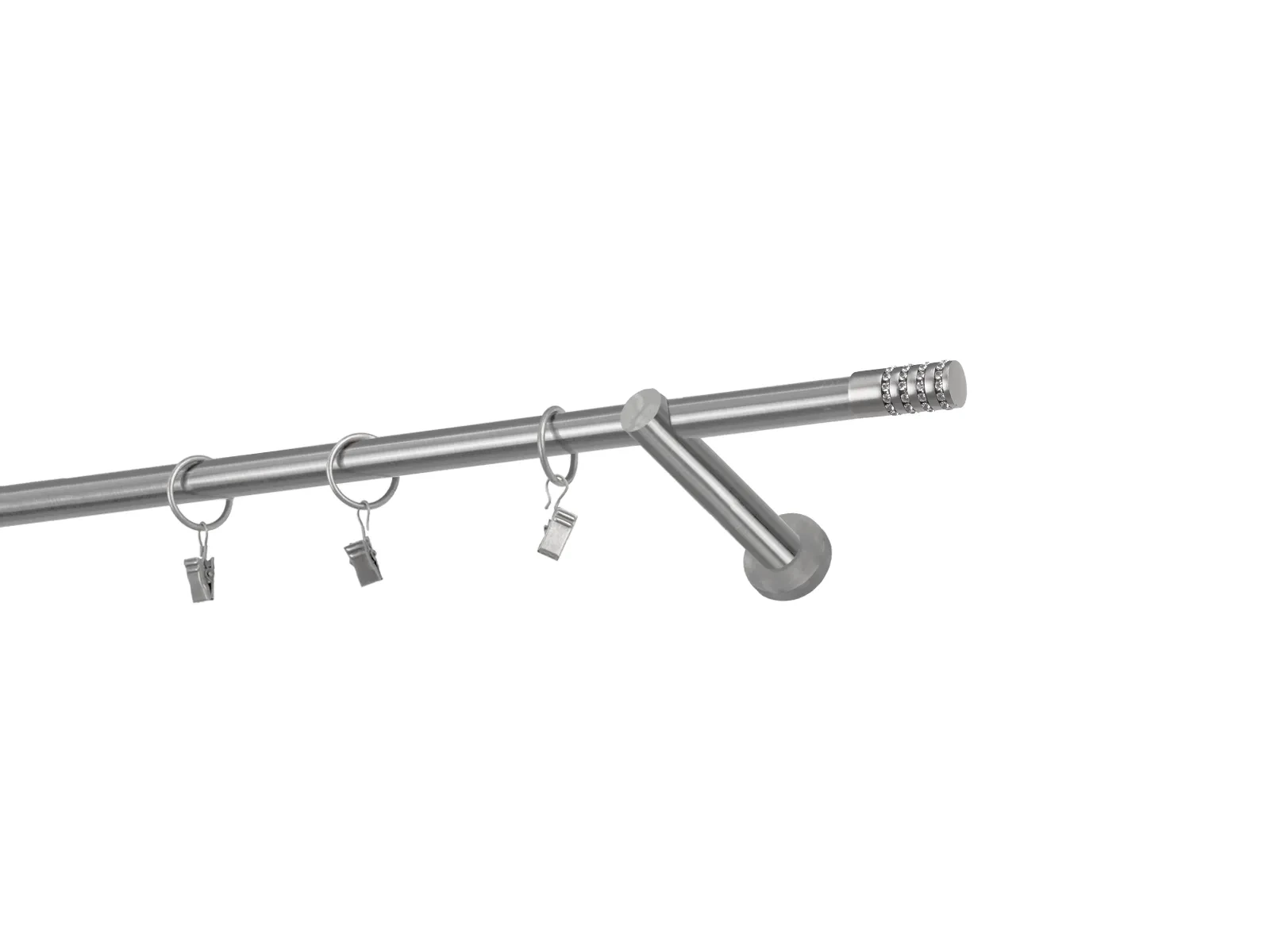 Felületkezelt egysoros fém függönykarnis satin (matt nikkel) árnyalat. Minőségi galvanizált fém függönykarnisok. A galvanizálás nagyobb felületi szilárdságot, nagyobb karcállóságot és sima felületet biztosít. Készletként szállítjuk.