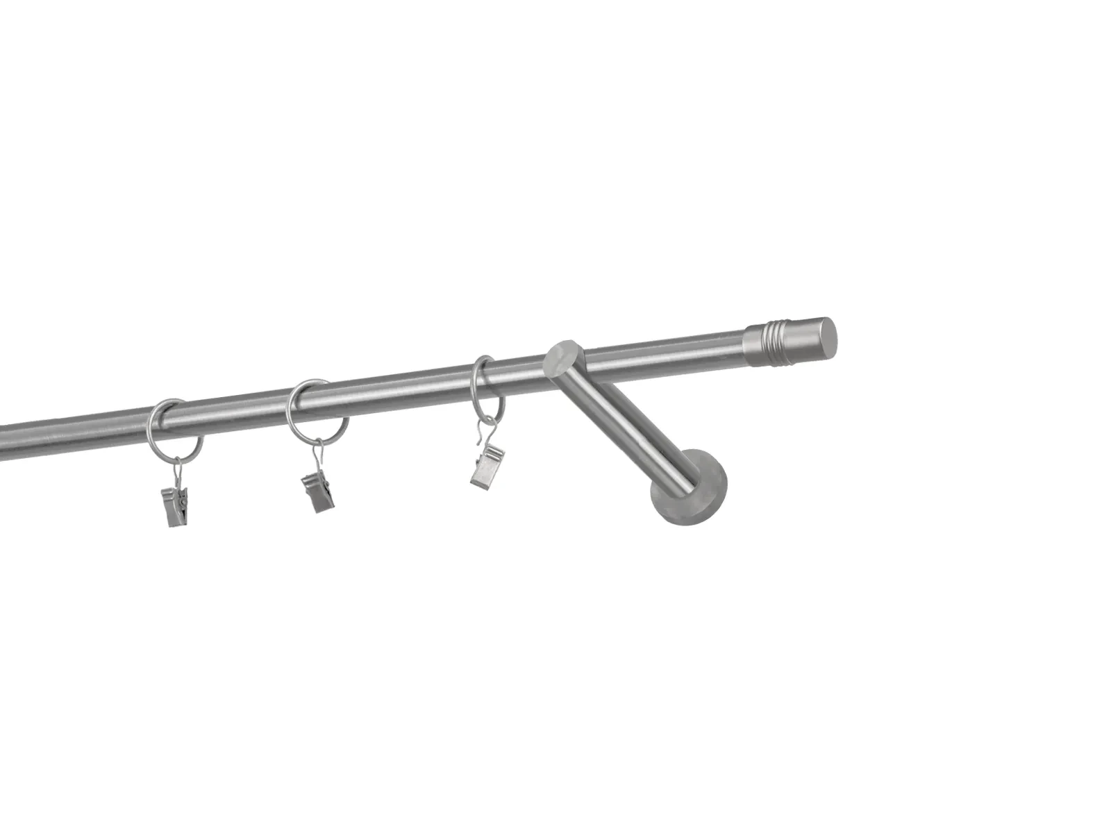 Felületkezelt egysoros fém függönykarnis satin (matt nikkel) árnyalat. Minőségi galvanizált fém függönykarnisok. A galvanizálás nagyobb felületi szilárdságot, nagyobb karcállóságot és sima felületet biztosít. Készletként szállítjuk.