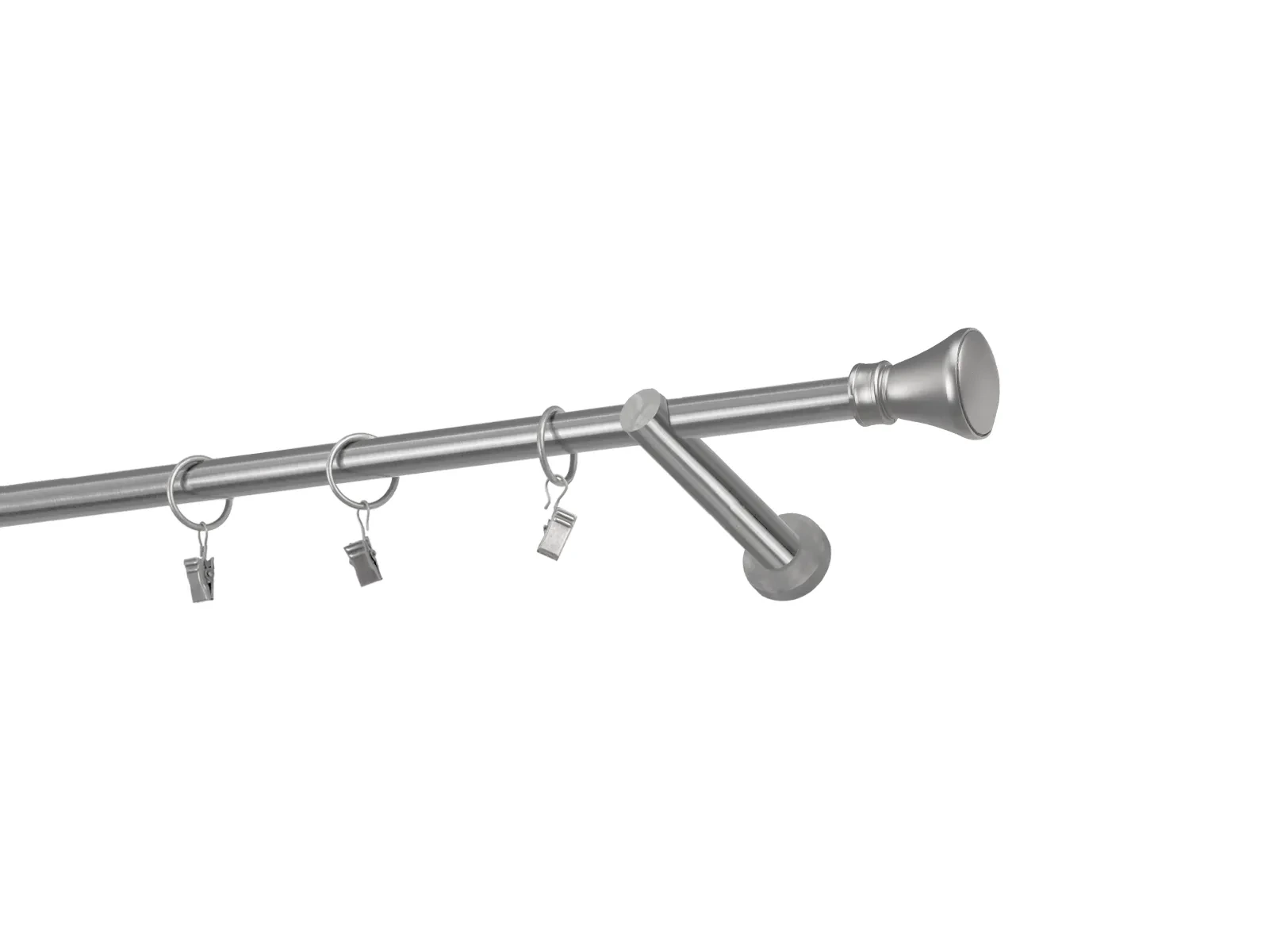 Hosszúság 1200 mm – 16mm átmérőjű rúd - 1200mm hosszú – 1db, tartókonzol - 2db, karnisvég - 2db, karikák csipesszel – 11db (karikák és csipeszek választásakor), csavarok és tiplik szerelésre