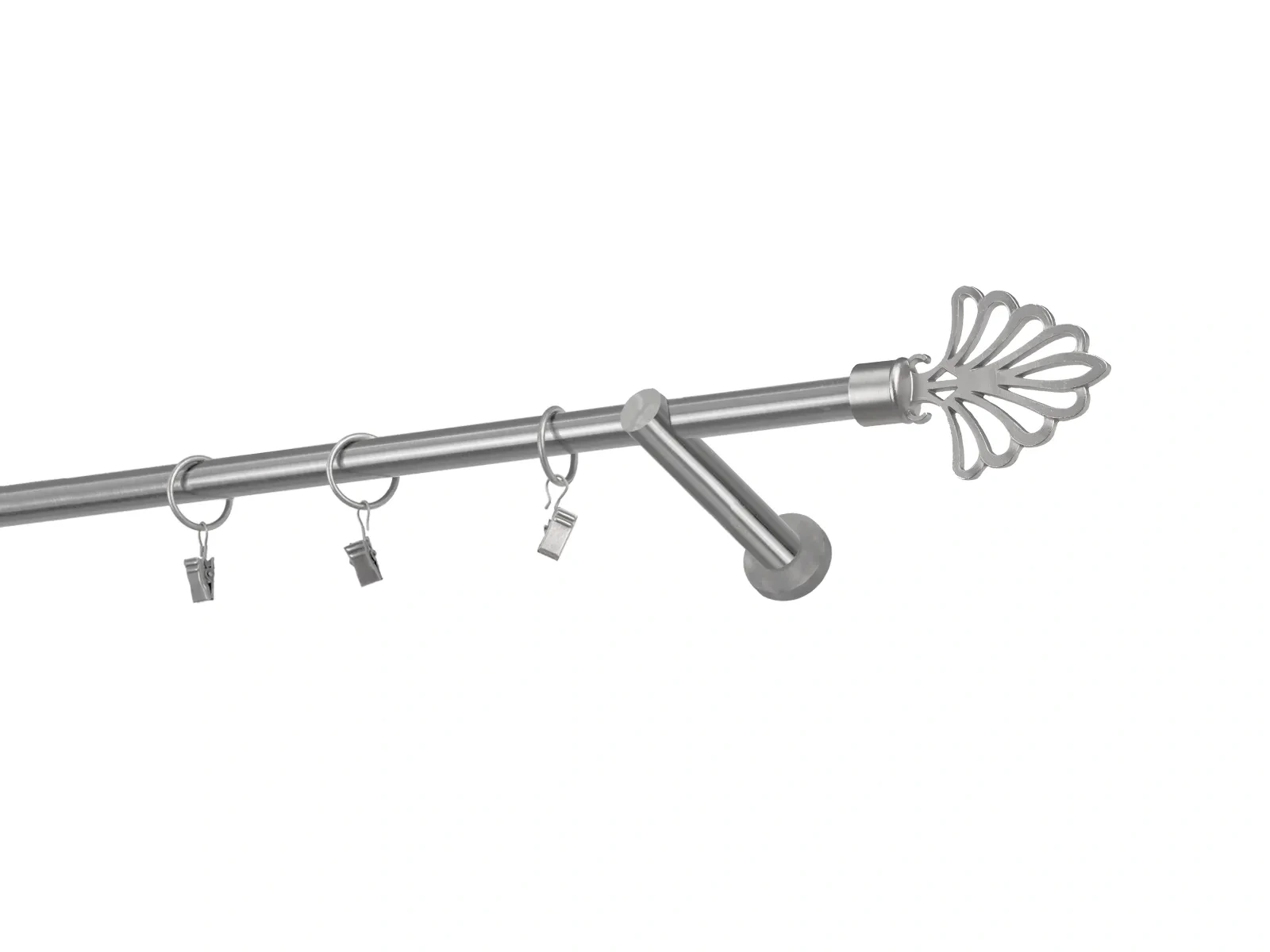Hosszúság 1600 mm – 16mm átmérőjű rúd - 1600mm hosszú – 1db, tartókonzol - 2db, karnisvég - 2db, karikák csipesszel – 15db (karikák és csipeszek választásakor), csavarok és tiplik szerelésre