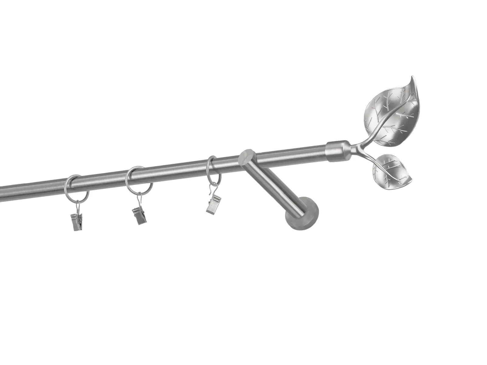 Hosszúság 1200 mm – 16mm átmérőjű rúd - 1200mm hosszú – 1db, tartókonzol - 2db, karnisvég - 2db, karikák csipesszel – 11db (karikák és csipeszek választásakor), csavarok és tiplik szerelésre