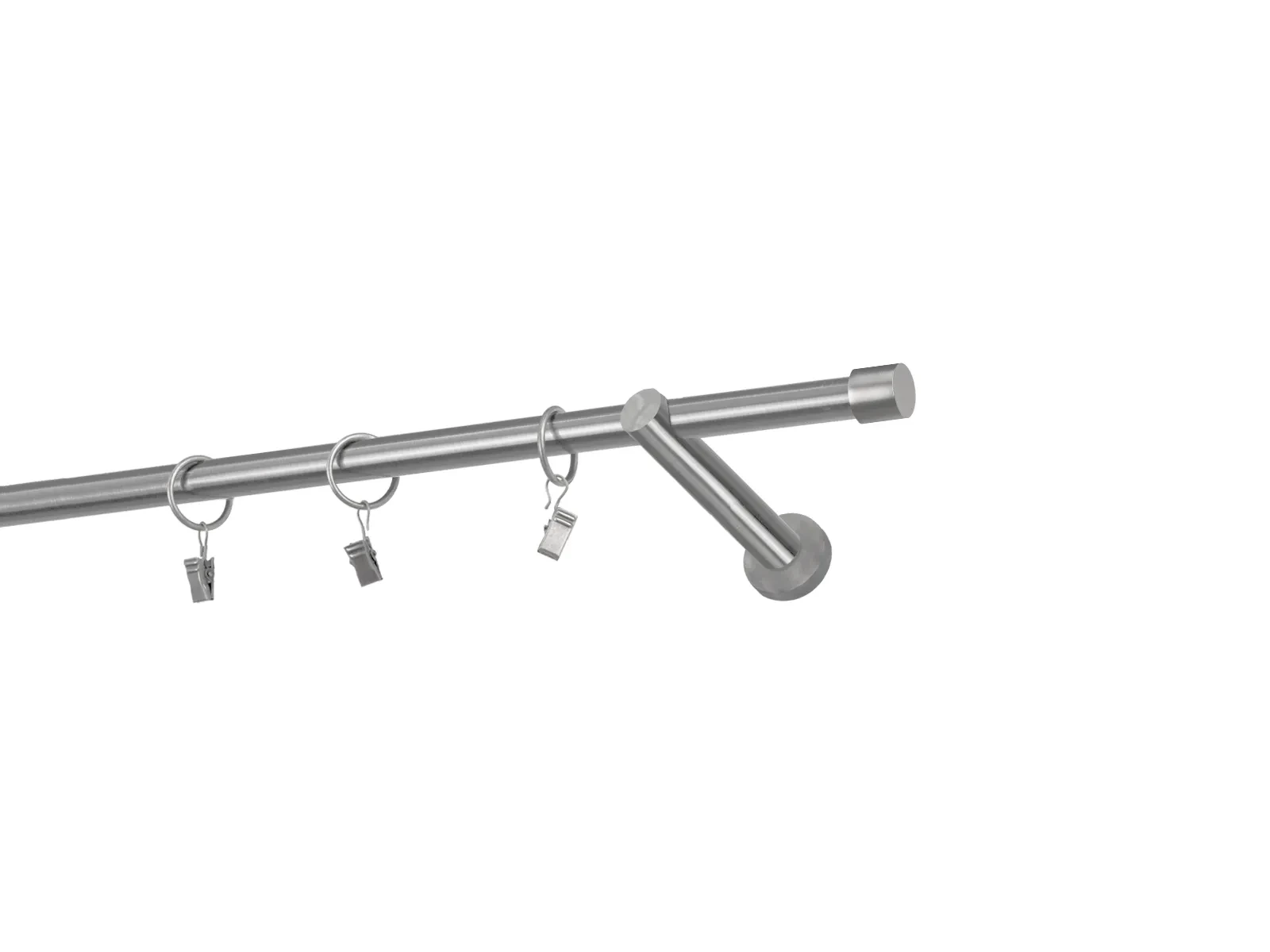 Felületkezelt egysoros fém függönykarnis satin (matt nikkel) árnyalat. Minőségi galvanizált fém függönykarnisok. A galvanizálás nagyobb felületi szilárdságot, nagyobb karcállóságot és sima felületet biztosít. Készletként szállítjuk.