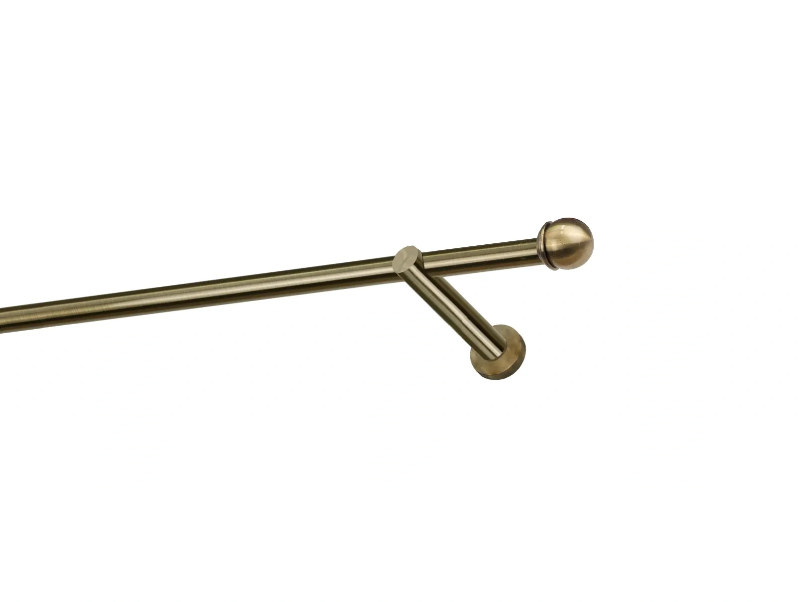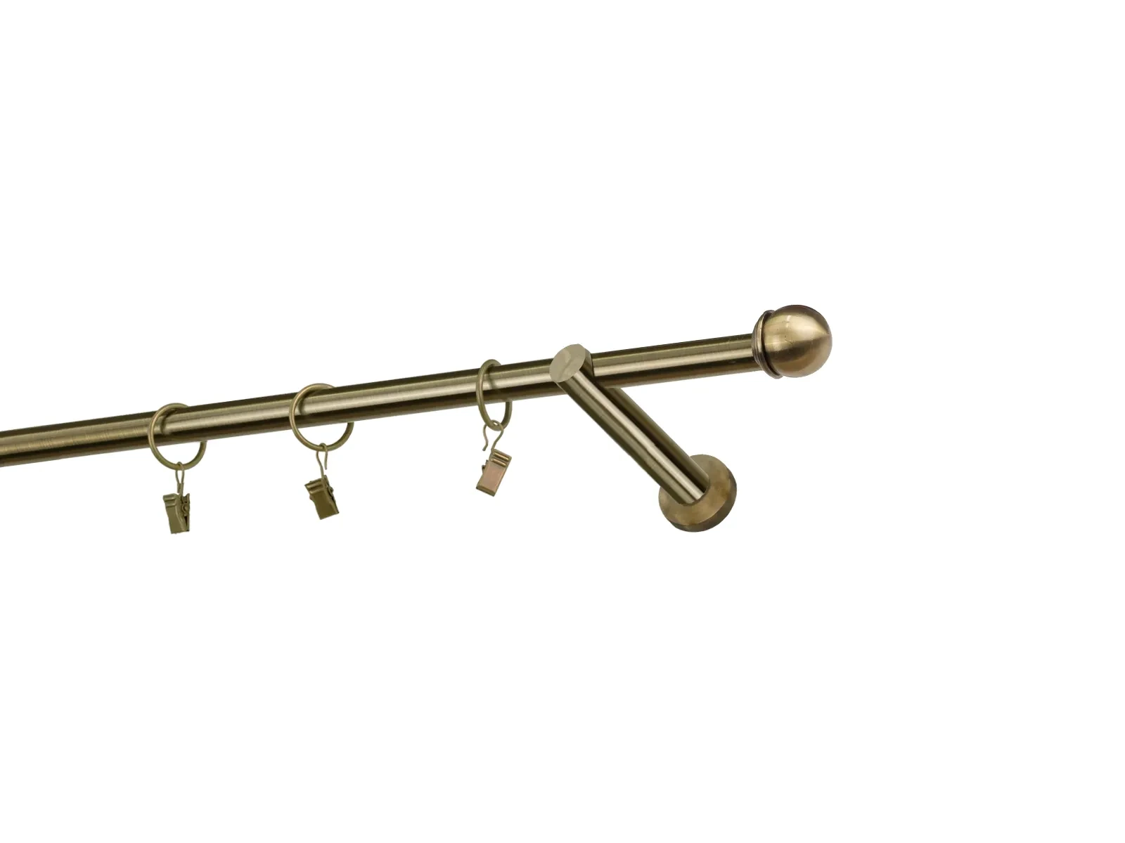 Felületkezelt egysoros fém függönykarnis antik (matt arany) árnyalat. Minőségi galvanizált fém függönykarnisok. A galvanizálás nagyobb felületi szilárdságot, nagyobb karcállóságot és sima felületet biztosít. Készletként szállítjuk.