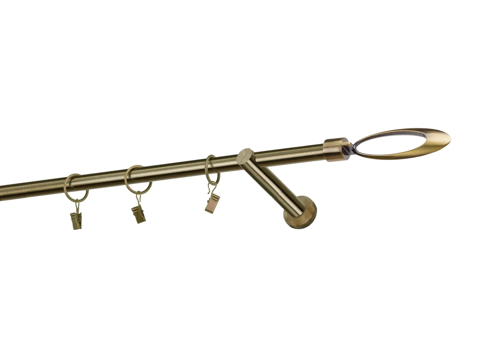 Felületkezelt egysoros fém függönykarnis antik (matt arany) árnyalat. Minőségi galvanizált fém függönykarnisok. A galvanizálás nagyobb felületi szilárdságot, nagyobb karcállóságot és sima felületet biztosít. Készletként szállítjuk.