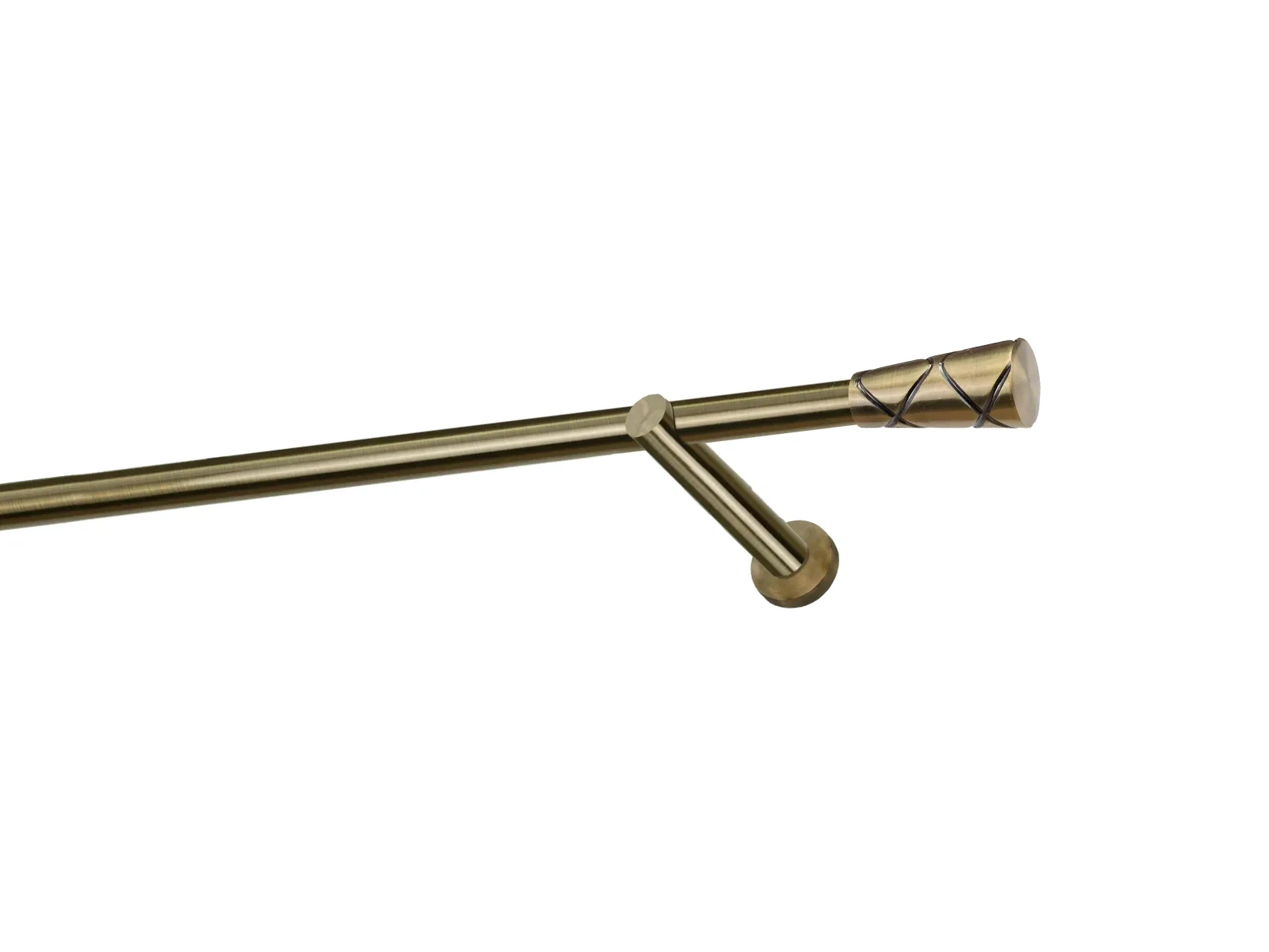 Felületkezelt egysoros fém függönykarnis antik (matt arany) árnyalat. Minőségi galvanizált fém függönykarnisok. A galvanizálás nagyobb felületi szilárdságot, nagyobb karcállóságot és sima felületet biztosít. Készletként szállítjuk.
