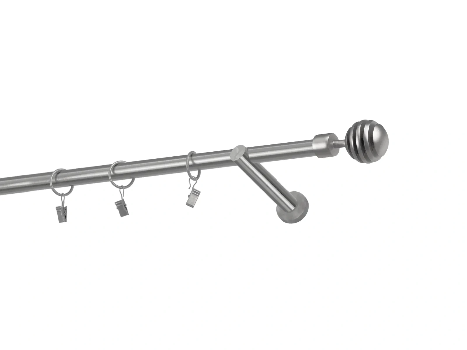 Hosszúság 1200 mm – 19mm átmérőjű rúd - 1200mm hosszú – 1db, tartókonzol - 2db, karnisvég - 2db, karikák csipesszel – 11db (karikák és csipeszek választásakor), csavarok és tiplik szerelésre