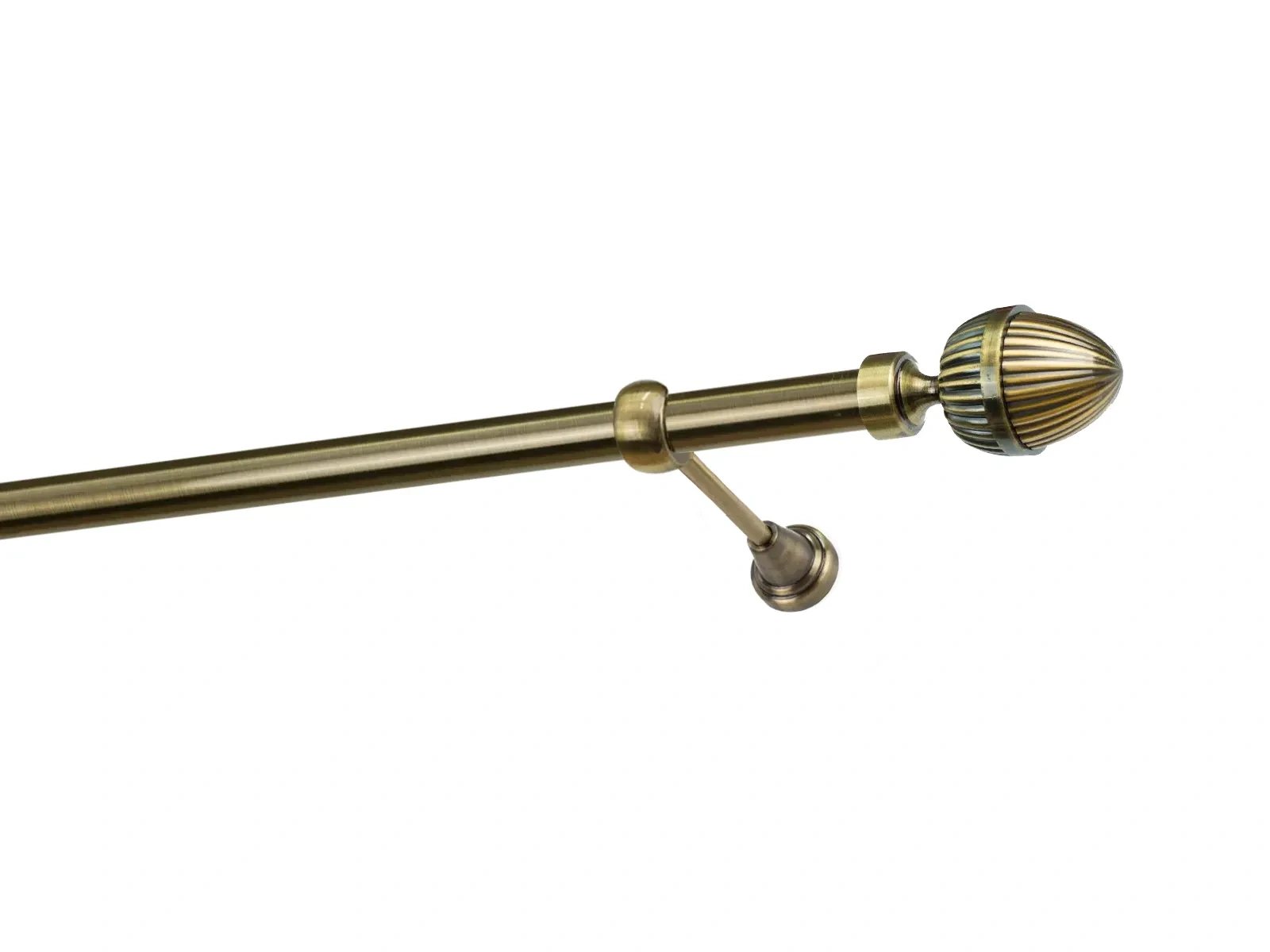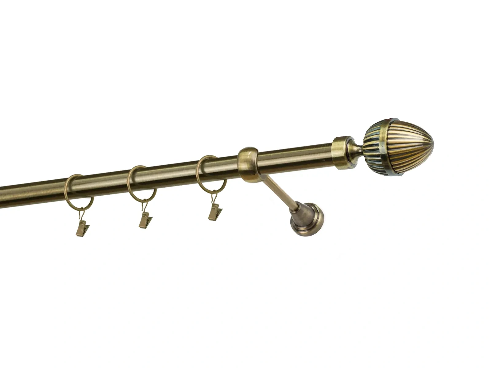 Felületkezelt egysoros fém függönykarnis antik (matt arany) árnyalat. Minőségi galvanizált fém függönykarnisok. A galvanizálás nagyobb felületi szilárdságot, nagyobb karcállóságot és sima felületet biztosít. Készletként szállítjuk.