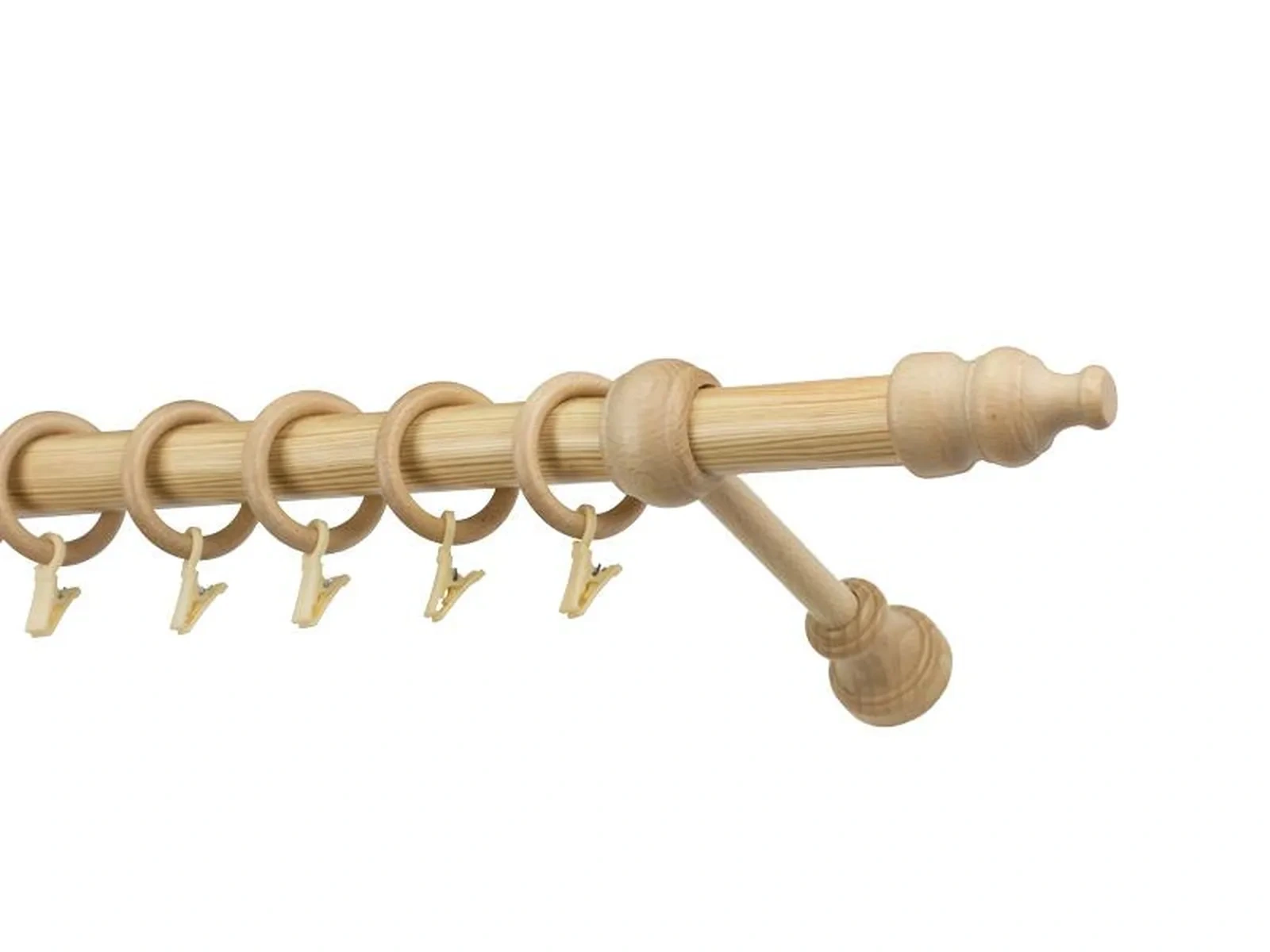 Végzárók, tartókonzolok és a karikák fából vannak. A rúd fából készül (olyan technológiával van gyártva, amilyennel vannak gyártva a fa ablakok is – ami kiküszöböli a hőhajlítást) és színre van fóliázva. Szettként vannak szállítva.