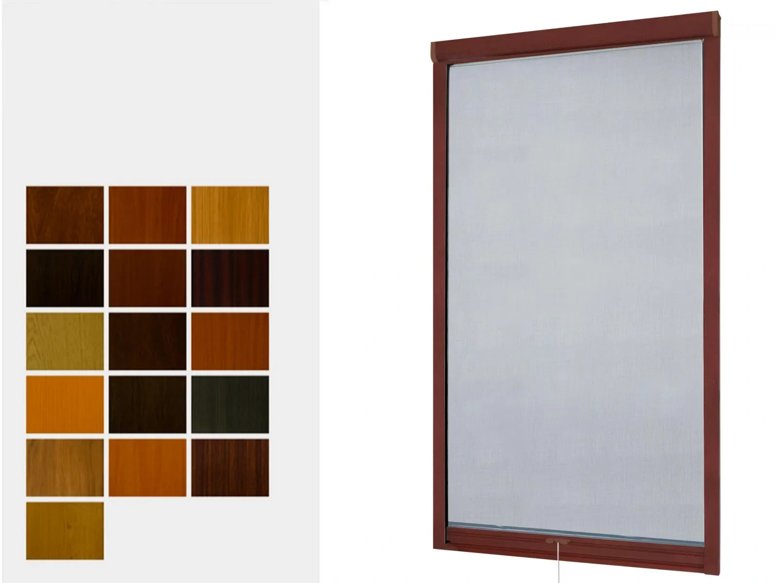 A Renolit kivitelű szúnyoghálók alumínium tokkal és vezérlő sínnel készülnek, amely faimitációs fóliával van bevonva, ugyan úgy, mint a faimitáció kivitelű plaszt ablakok. A használt megnevezések, a RENOLIT fólia eredeti nevei. Felhívjuk a figyelmét hogy a monitoron megjelenő színek, nem míndíg felelnek meg a valóságnak.