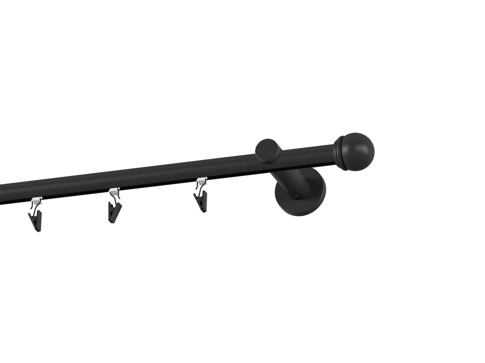 Jednoradová drážková garniža s povrchovou úpravou - čierna lakovaná. Garniže sú dodávané sú v kompletoch. Tvar koncovky a typ držiaka podľa zadaného výberu.