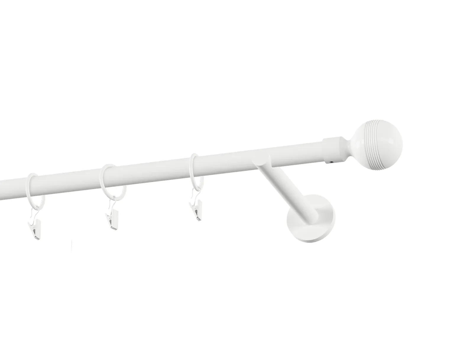 Jednoradová garniža s povrchovou úpravou - biela lakovaná. Garniže sú dodávané sú v kompletoch. Tvar koncovky a typ držiaka podľa zadaného výberu.