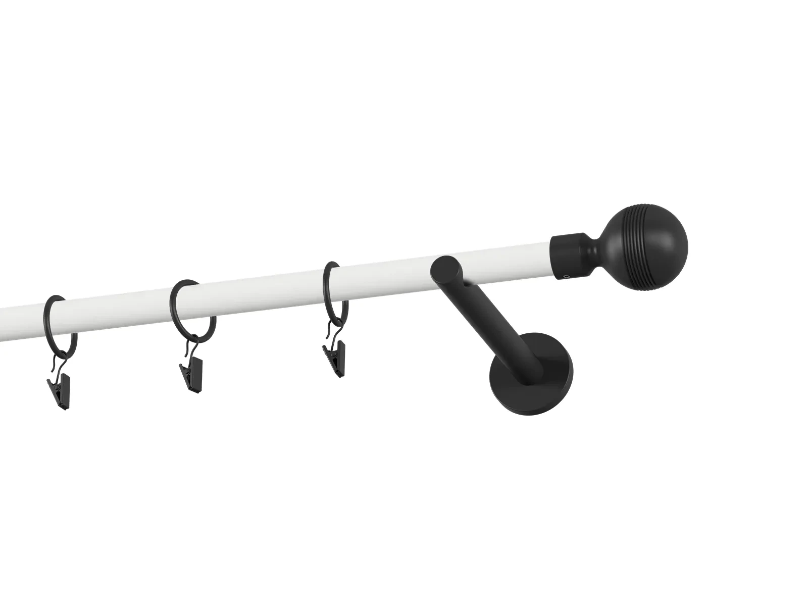 Jednoradová garniža s povrchovou úpravou - bielo čierna lakovaná. Garniže sú dodávané sú v kompletoch. Tvar koncovky a typ držiaka podľa zadaného výberu.