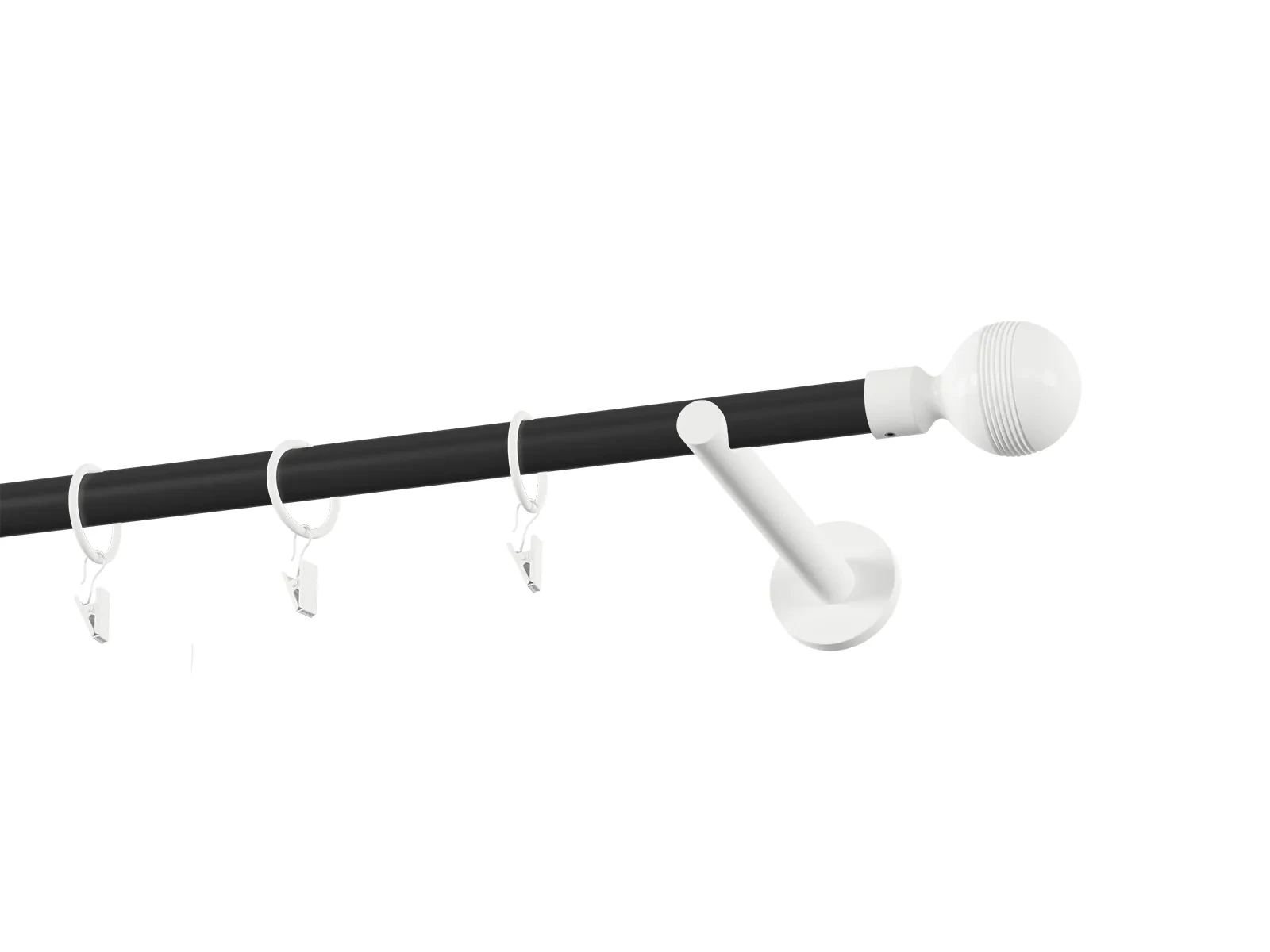 Jednoradová garniža s povrchovou úpravou - čierno biela lakovaná. Garniže sú dodávané sú v kompletoch. Tvar koncovky a typ držiaka podľa zadaného výberu.