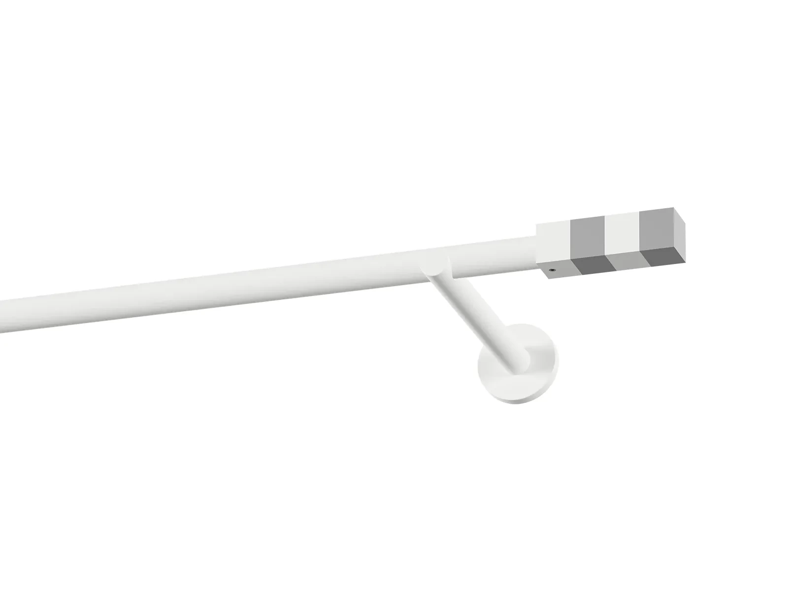 Jednoradová garniža s povrchovou úpravou - biela lakovaná. Garniže sú dodávané sú v kompletoch. Tvar koncovky a typ držiaka podľa zadaného výberu.