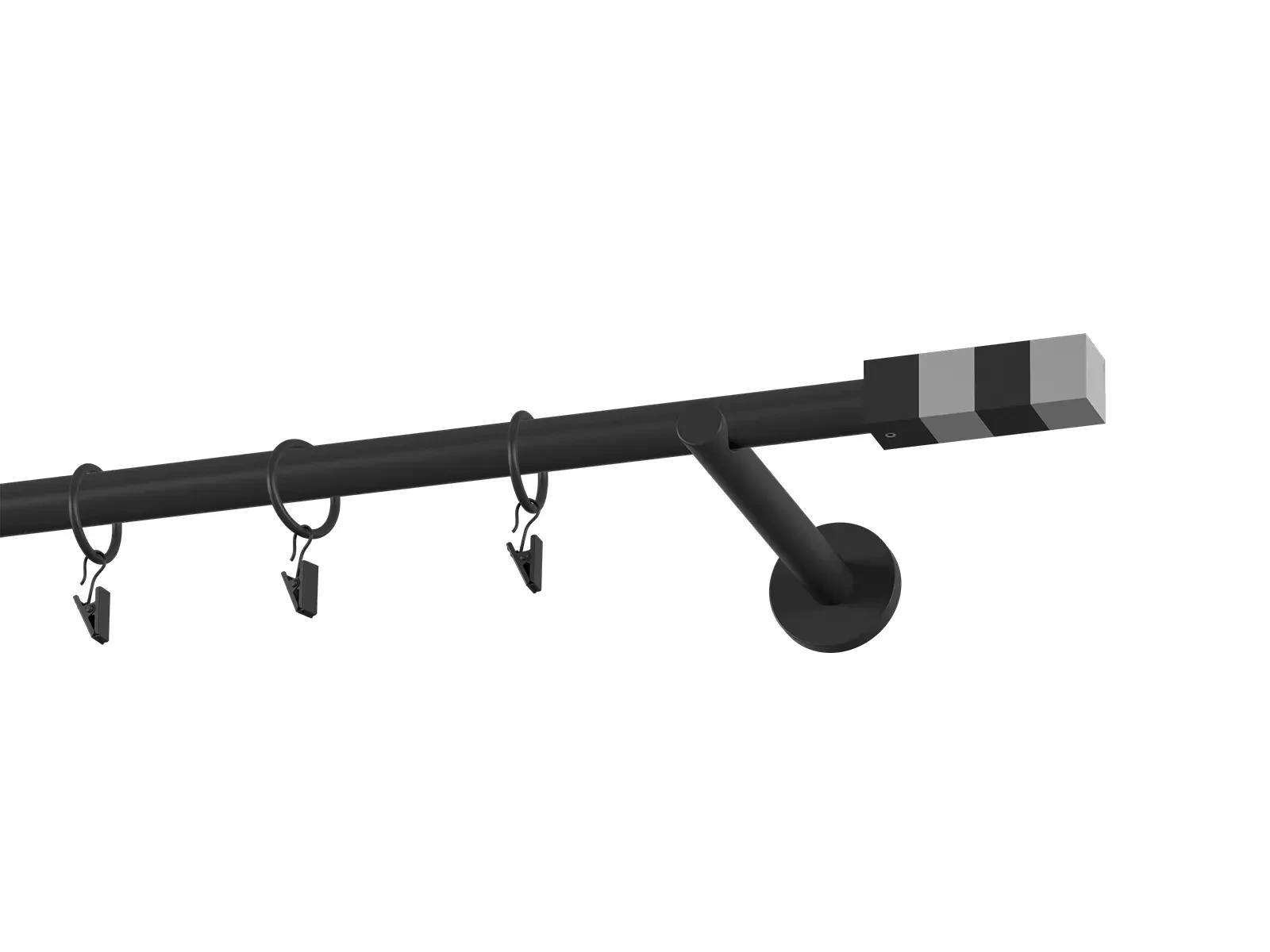 Dĺžka 1600 mm - tyč 19mm - 1600mm - 1ks, držiak - 2ks, koncovka - 2ks, krúžok so štipcom - 15ks (pri výbere parametra príslušenstvo s krúžkami so štipcom), skrutky a hmoždinky na montáž