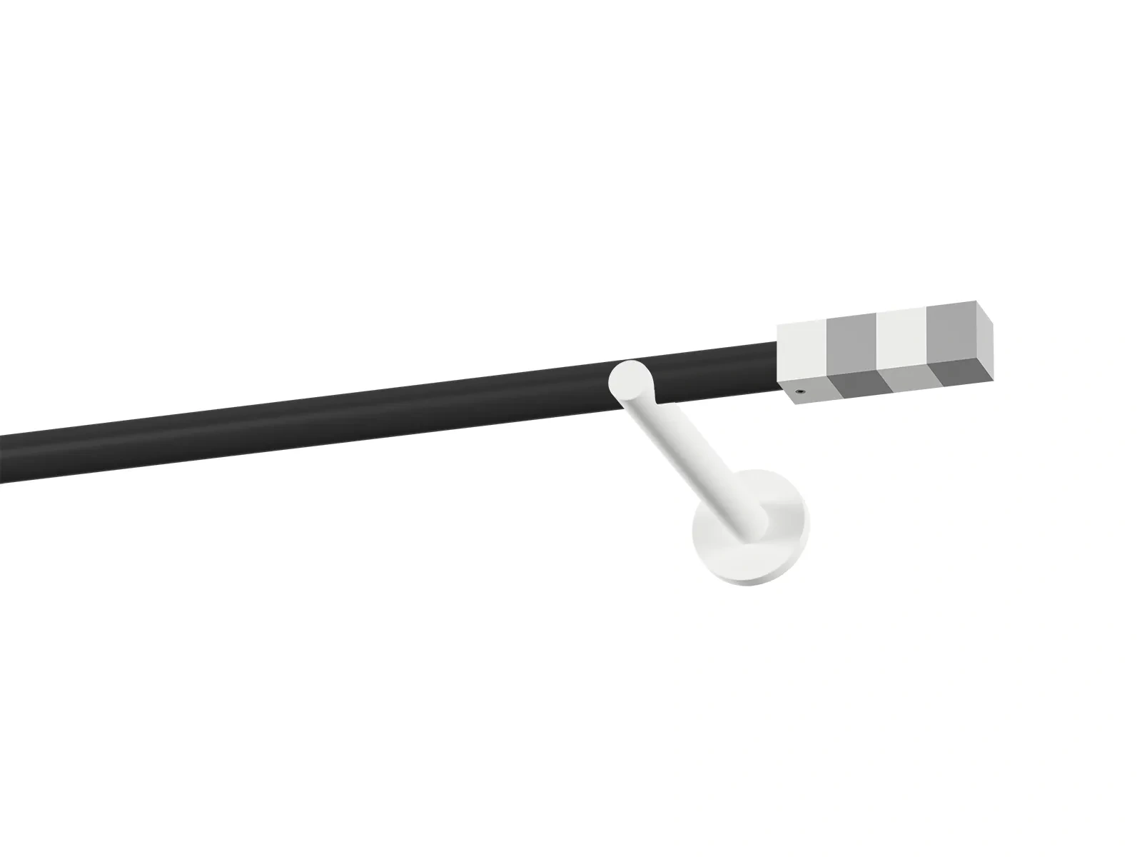 Jednoradová garniža s povrchovou úpravou - čierno biela lakovaná. Garniže sú dodávané sú v kompletoch. Tvar koncovky a typ držiaka podľa zadaného výberu.