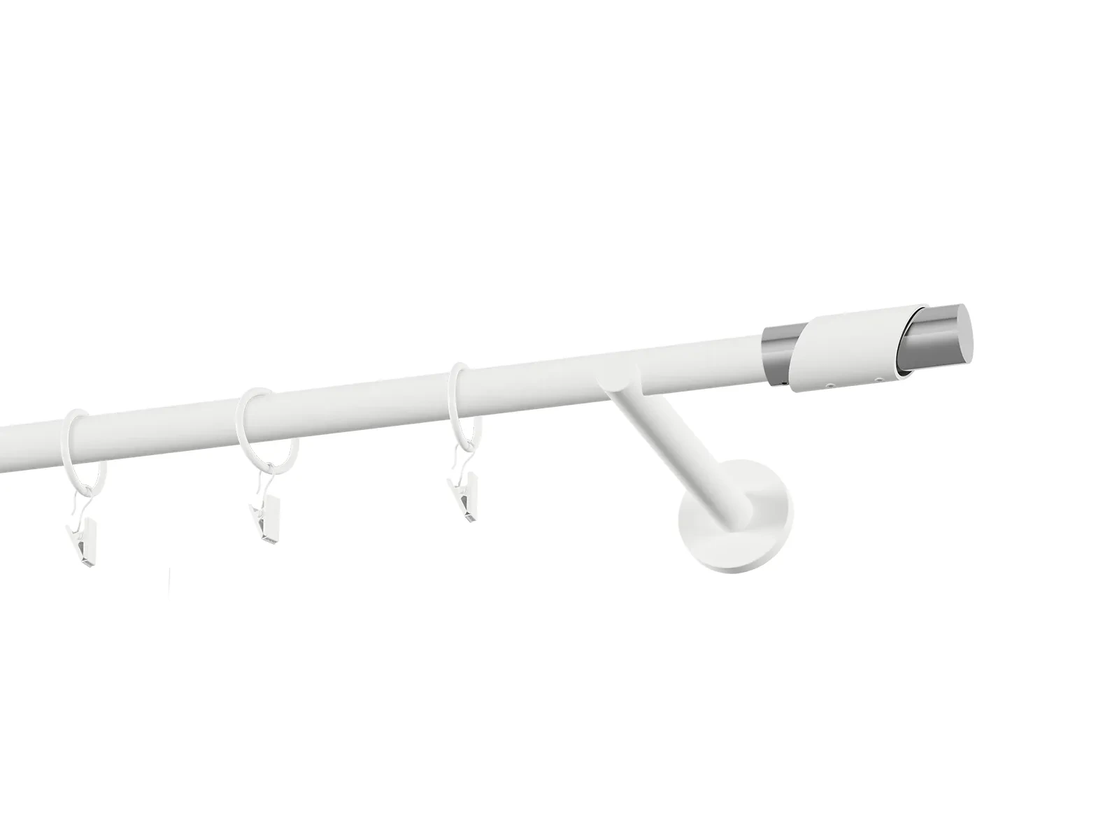 Jednoradová garniža s povrchovou úpravou - biela lakovaná. Garniže sú dodávané sú v kompletoch. Tvar koncovky a typ držiaka podľa zadaného výberu.