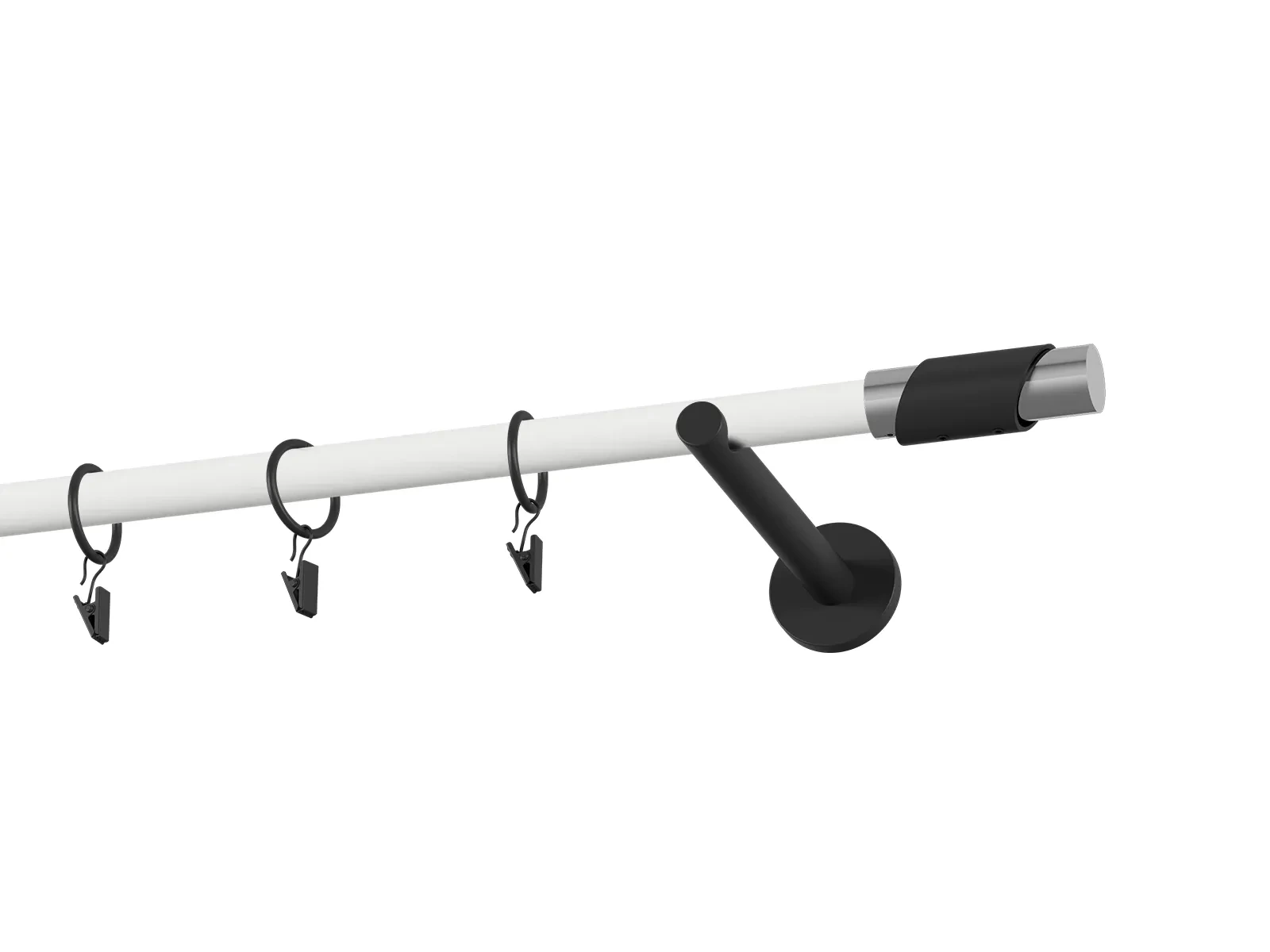 Jednoradová garniža s povrchovou úpravou - bielo čierna lakovaná. Garniže sú dodávané sú v kompletoch. Tvar koncovky a typ držiaka podľa zadaného výberu.