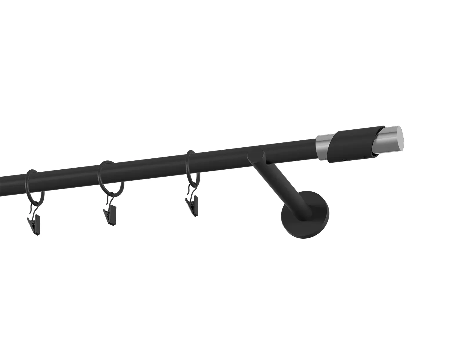 Jednoradová garniža s povrchovou úpravou - čierna lakovaná. Garniže sú dodávané sú v kompletoch. Tvar koncovky a typ držiaka podľa zadaného výberu.