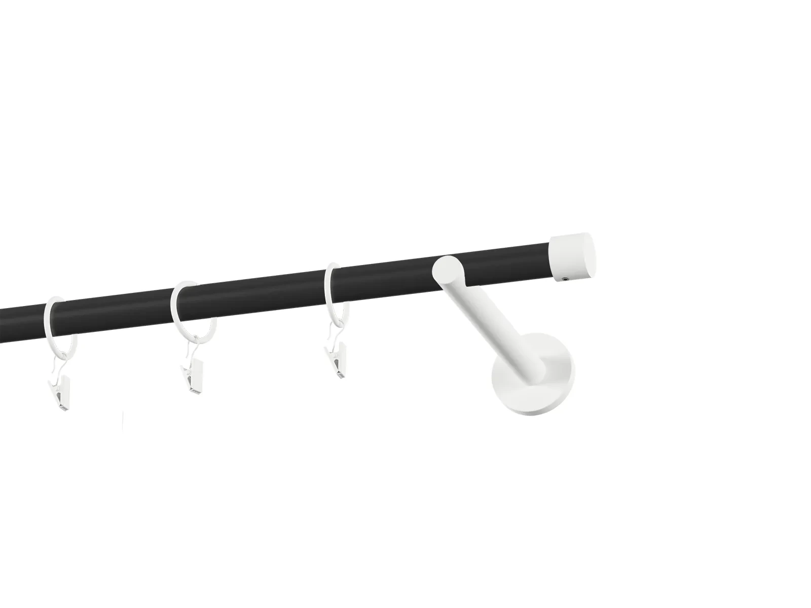 Jednoradová garniža s povrchovou úpravou - čierno biela lakovaná. Garniže sú dodávané sú v kompletoch. Tvar koncovky a typ držiaka podľa zadaného výberu.
