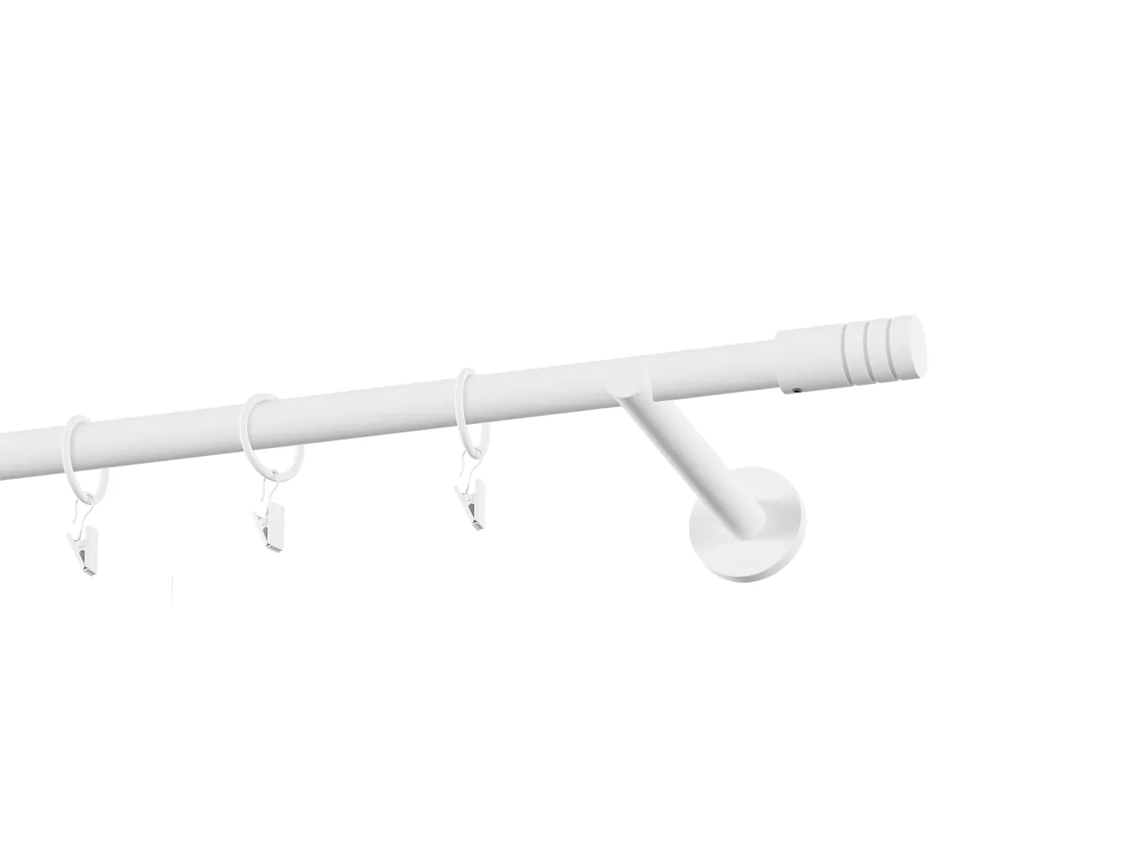 Jednoradová garniža s povrchovou úpravou - biela lakovaná. Garniže sú dodávané sú v kompletoch. Tvar koncovky a typ držiaka podľa zadaného výberu.
