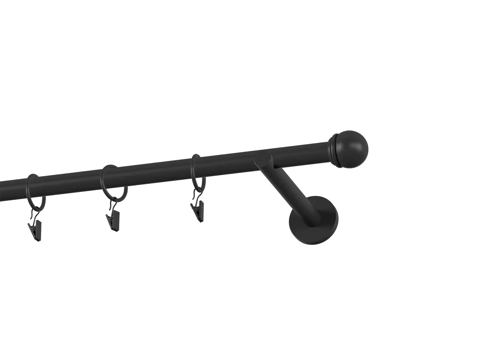 Dĺžka 1200 mm - tyč 19mm - 1200mm - 1ks, držiak - 2ks, koncovka - 2ks, krúžok so štipcom - 11ks (pri výbere parametra príslušenstvo s krúžkami so štipcom), skrutky a hmoždinky na montáž