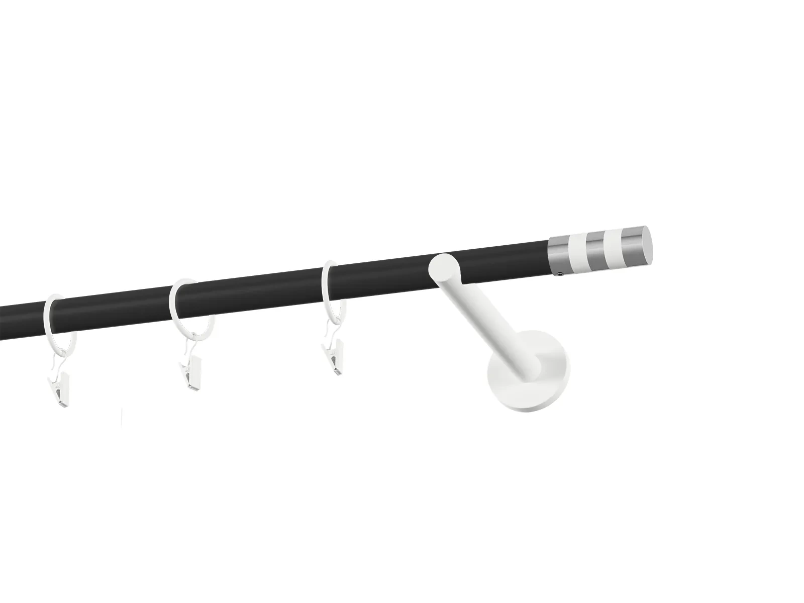 Jednoradová garniža s povrchovou úpravou - čierno biela lakovaná. Garniže sú dodávané sú v kompletoch. Tvar koncovky a typ držiaka podľa zadaného výberu.