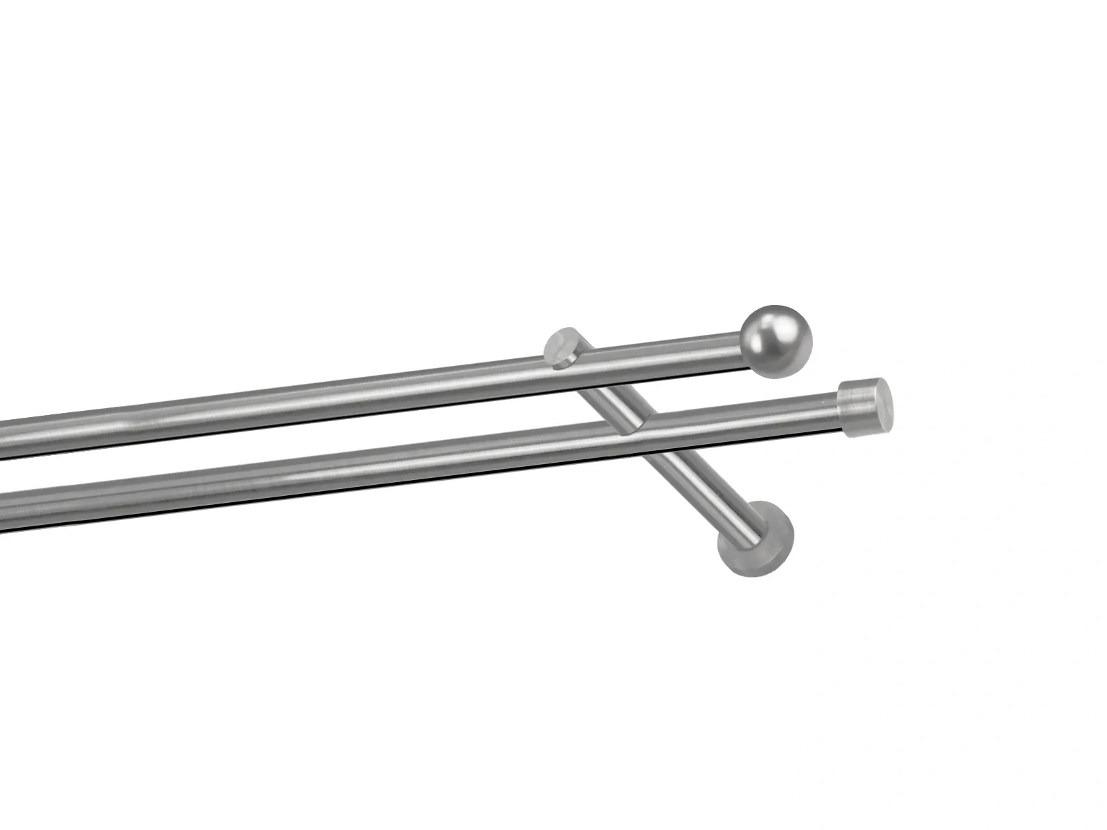 Dvojradová garniža s povrchovou úpravou - odtieň satin-nikel (matné striebro). Celokovové garniže s kvalitnou povrchovou úpravou - galvanické pokovovanie. Galvanické pokovovanie zabezpečuje vyššiu povrchovú tvrdosť, zvýšenú dolnosť voči poškriabaniu, hladký povrch. Dodávané sú v kompletoch.