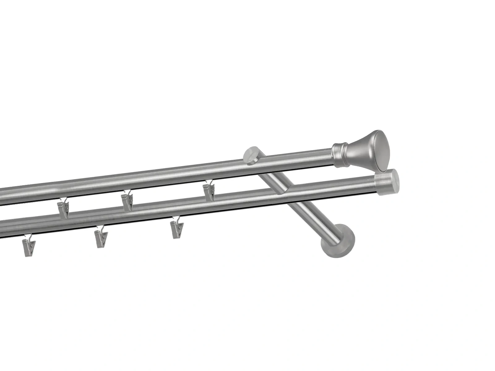 Dvojradová garniža s povrchovou úpravou - odtieň satin-nikel (matné striebro). Celokovové garniže s kvalitnou povrchovou úpravou - galvanické pokovovanie. Galvanické pokovovanie zabezpečuje vyššiu povrchovú tvrdosť, zvýšenú dolnosť voči poškriabaniu, hladký povrch. Dodávané sú v kompletoch.