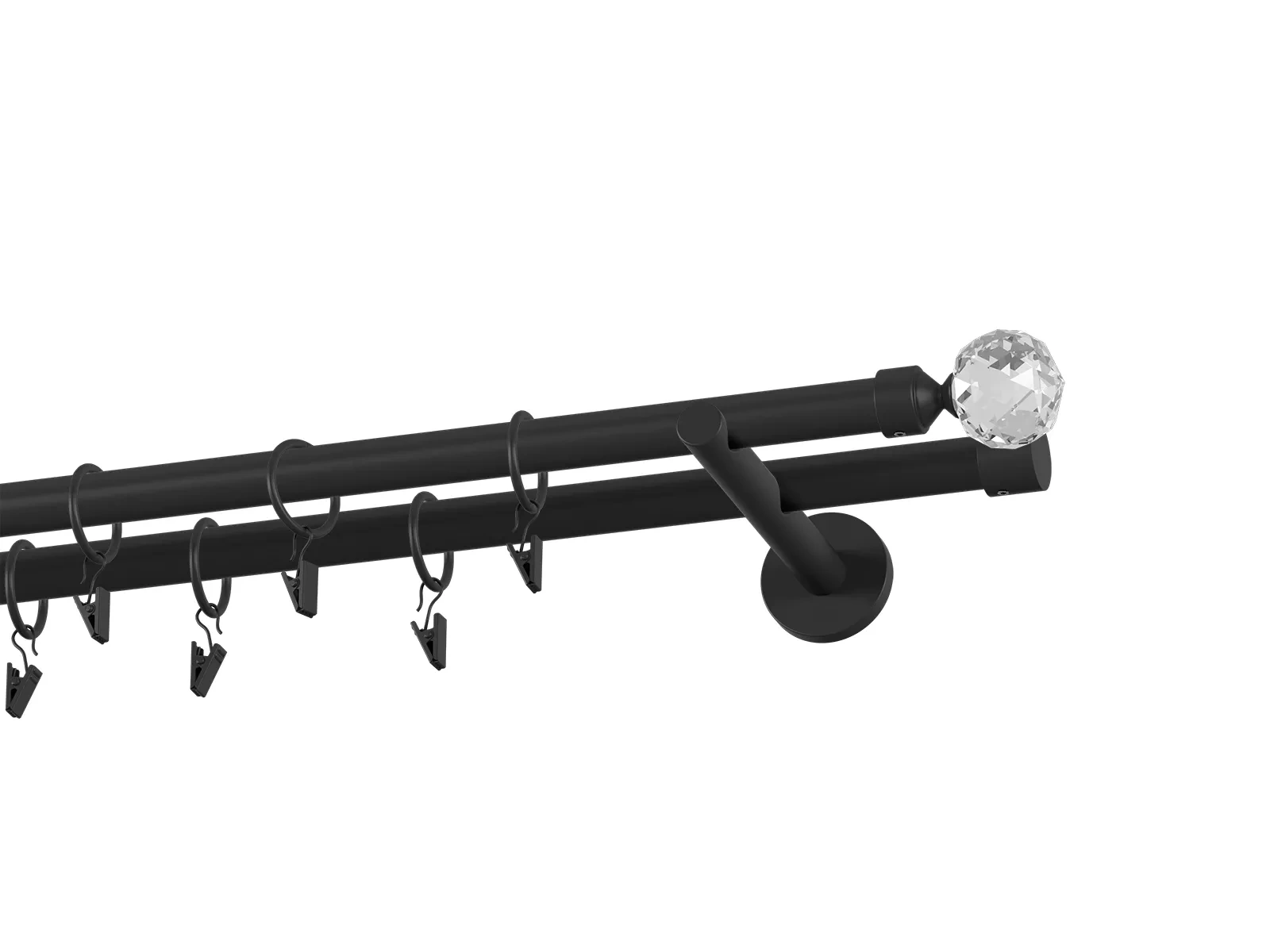 Dvojradová garniža s povrchovou úpravou - čierna lakovaná. Garniže sú dodávané sú v kompletoch. Tvar koncovky a typ držiaka podľa zadaného výberu.