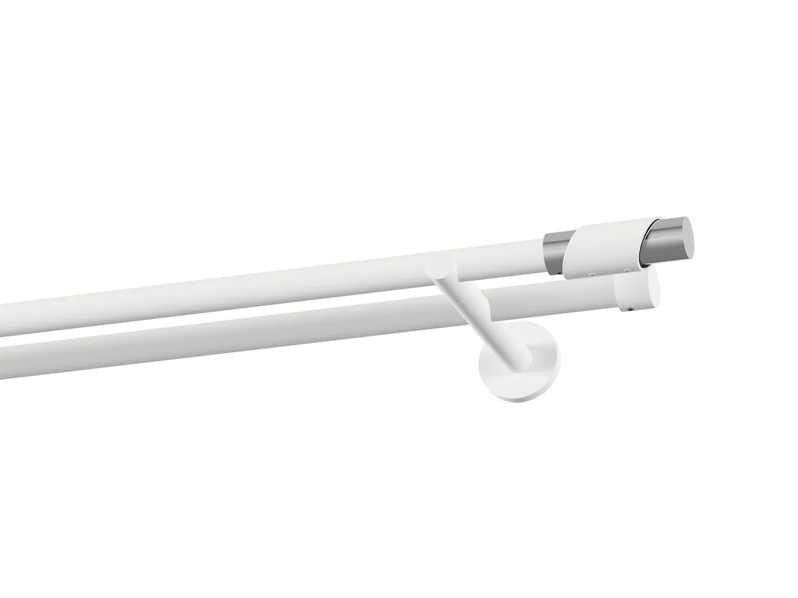 Dvojradová garniža s povrchovou úpravou - biela lakovaná. Garniže sú dodávané sú v kompletoch. Tvar koncovky a typ držiaka podľa zadaného výberu.