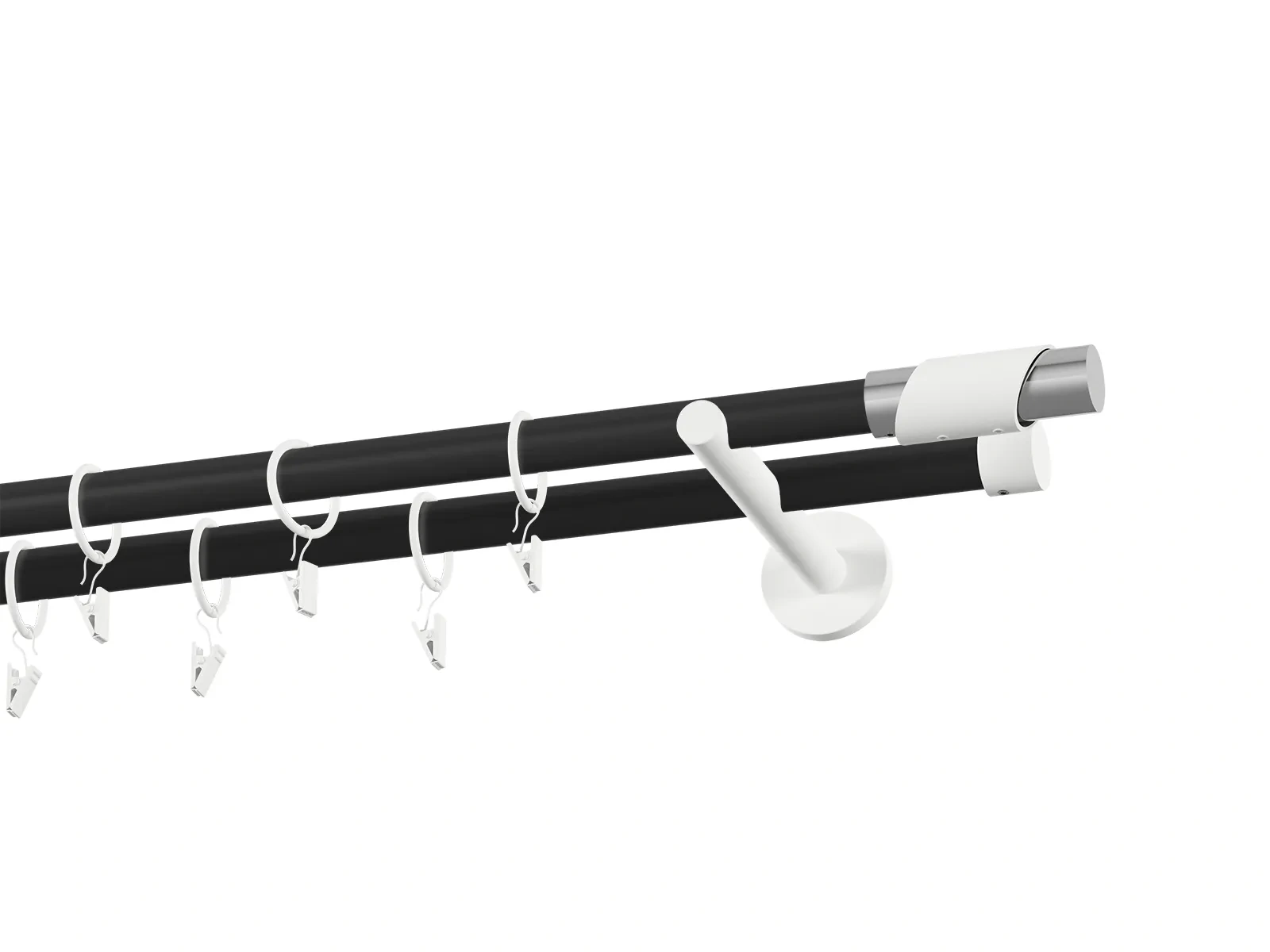 Dvojradová garniža s povrchovou úpravou - čierno biela lakovaná. Garniže sú dodávané sú v kompletoch. Tvar koncovky a typ držiaka podľa zadaného výberu.