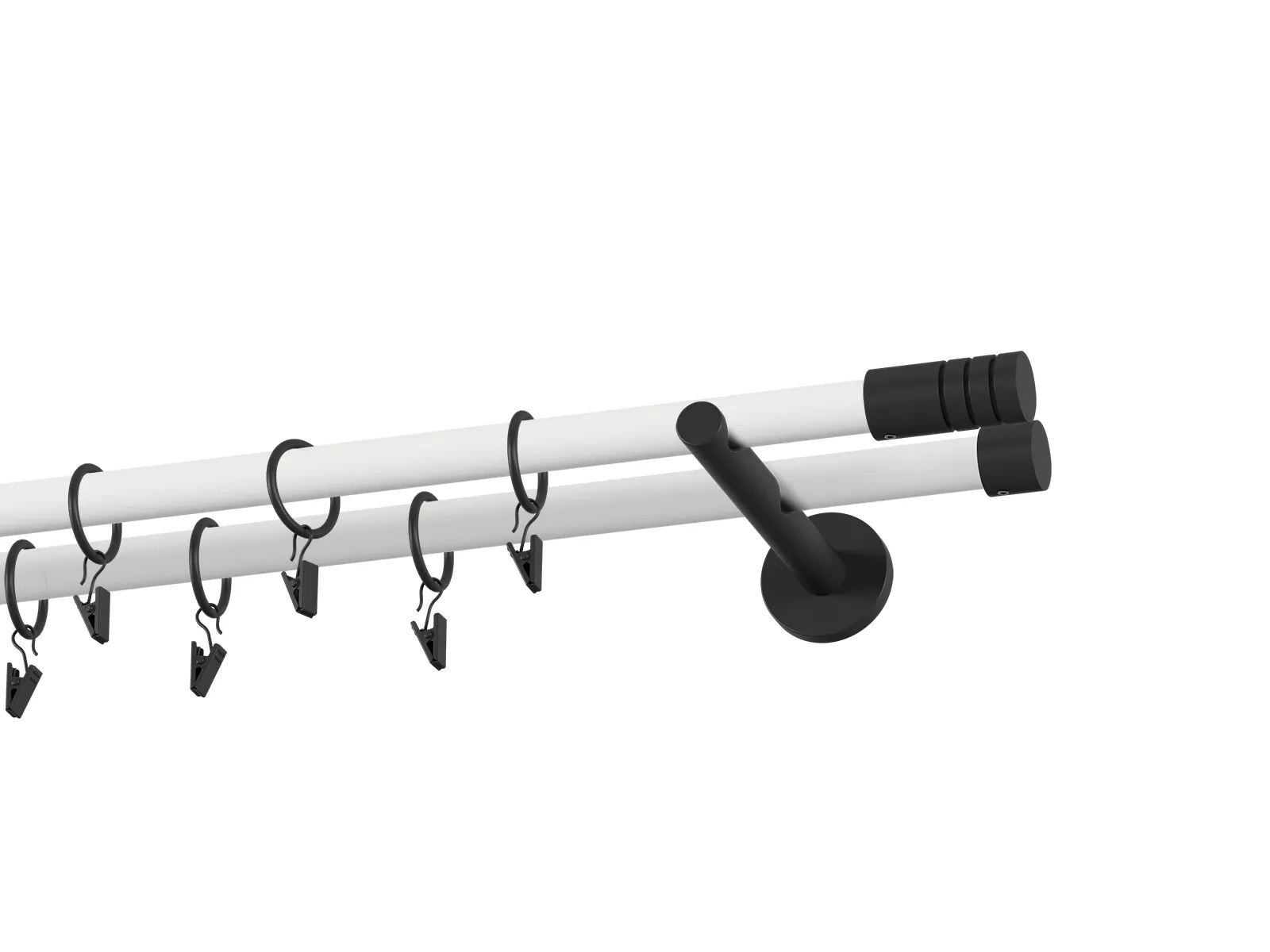 Dvojradová garniža s povrchovou úpravou - bielo čierna lakovaná. Garniže sú dodávané sú v kompletoch. Tvar koncovky a typ držiaka podľa zadaného výberu.