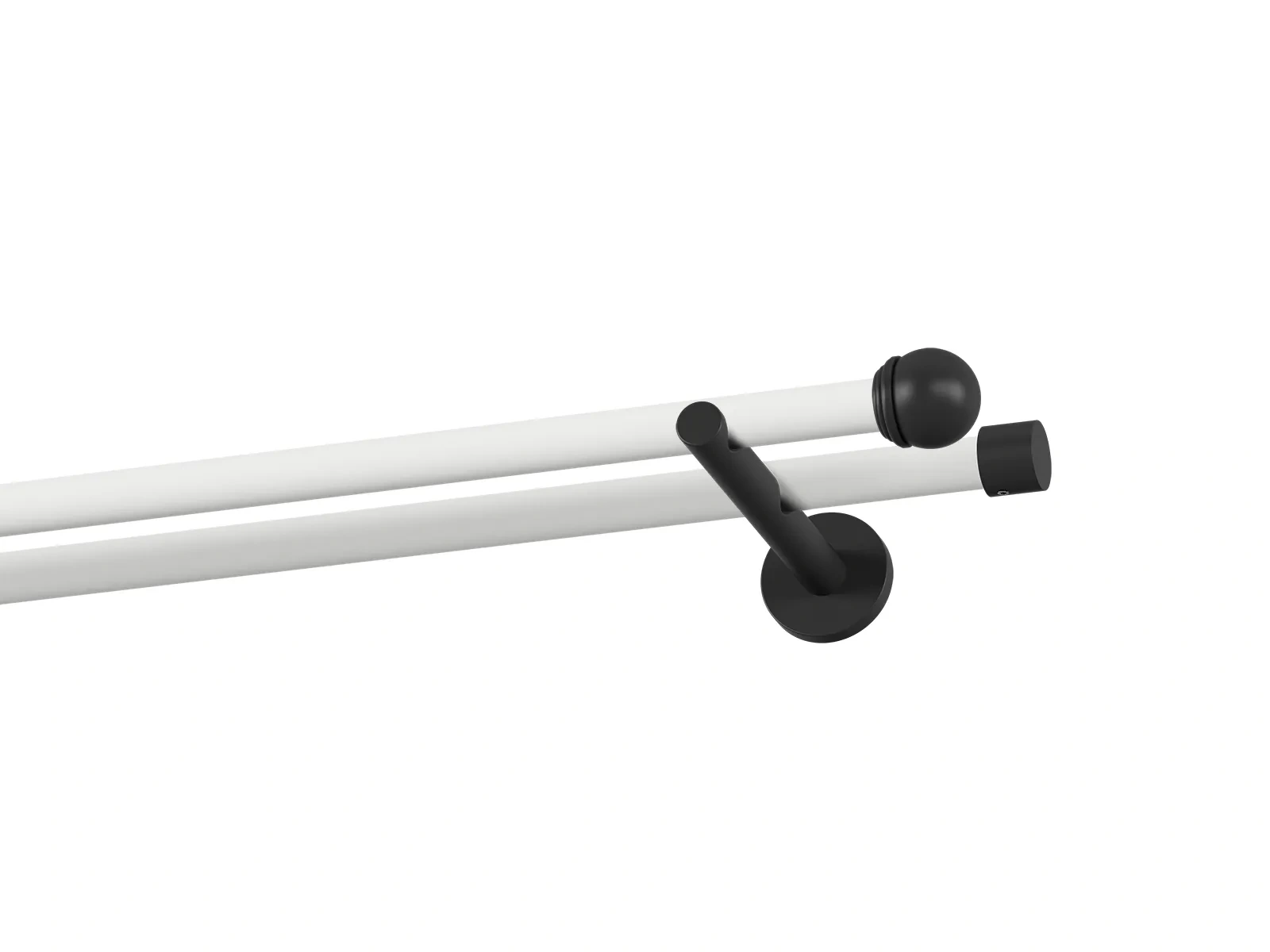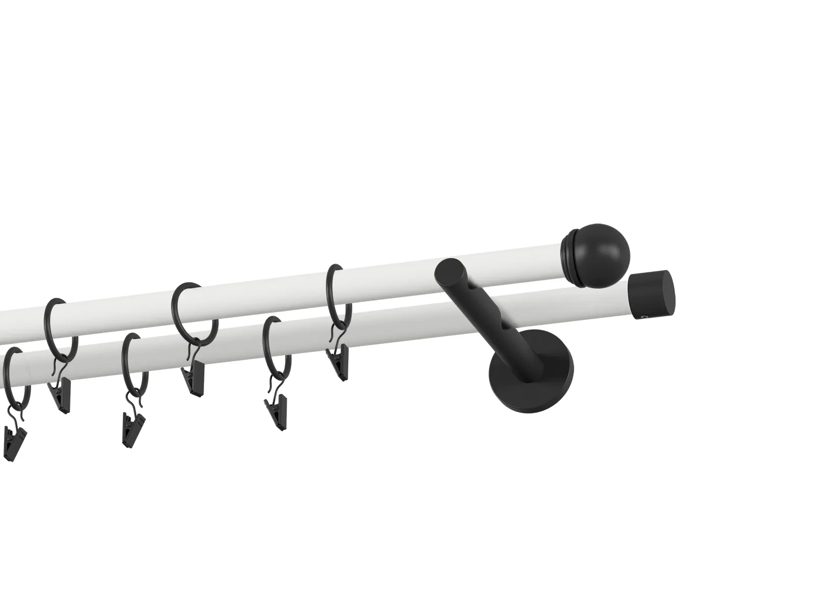 Dvojradová garniža s povrchovou úpravou - bielo čierna lakovaná. Garniže sú dodávané sú v kompletoch. Tvar koncovky a typ držiaka podľa zadaného výberu.