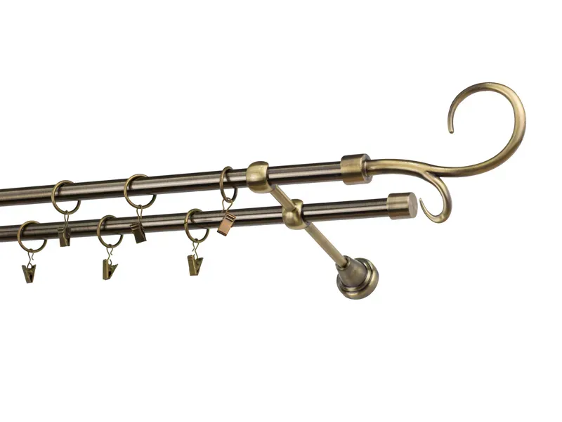 Dvojradová garniža s povrchovou úpravou - odtieň antik (matné zlato). Celokovové garniže s kvalitnou povrchovou úpravou - galvanické pokovovanie. Galvanické pokovovanie zabezpečuje vyššiu povrchovú tvrdosť, zvýšenú dolnosť voči poškriabaniu, hladký povrch. Dodávané sú v kompletoch.