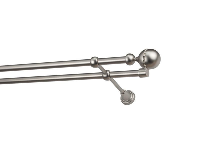 Dvojradová garniža s povrchovou úpravou - odtieň satin-nikel (matné striebro). Celokovové garniže s kvalitnou povrchovou úpravou - galvanické pokovovanie. Galvanické pokovovanie zabezpečuje vyššiu povrchovú tvrdosť, zvýšenú dolnosť voči poškriabaniu, hladký povrch. Dodávané sú v kompletoch.