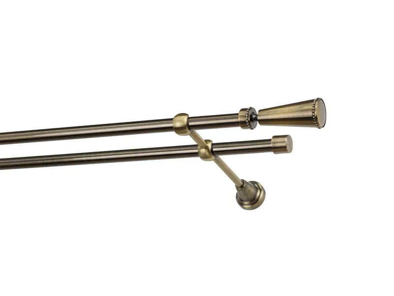 Dvojradová garniža s povrchovou úpravou - odtieň antik (matné zlato). Celokovové garniže s kvalitnou povrchovou úpravou - galvanické pokovovanie. Galvanické pokovovanie zabezpečuje vyššiu povrchovú tvrdosť, zvýšenú dolnosť voči poškriabaniu, hladký povrch. Dodávané sú v kompletoch.