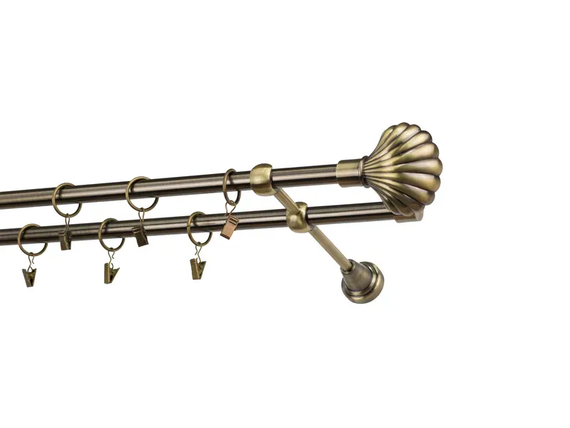 Dvojradová garniža s povrchovou úpravou - odtieň antik (matné zlato). Celokovové garniže s kvalitnou povrchovou úpravou - galvanické pokovovanie. Galvanické pokovovanie zabezpečuje vyššiu povrchovú tvrdosť, zvýšenú dolnosť voči poškriabaniu, hladký povrch. Dodávané sú v kompletoch.