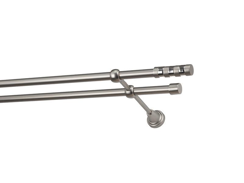 Dvojradová garniža s povrchovou úpravou - odtieň satin-nikel (matné striebro). Celokovové garniže s kvalitnou povrchovou úpravou - galvanické pokovovanie. Galvanické pokovovanie zabezpečuje vyššiu povrchovú tvrdosť, zvýšenú dolnosť voči poškriabaniu, hladký povrch. Dodávané sú v kompletoch.