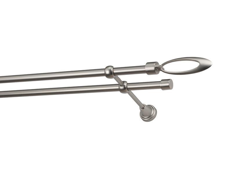 Dvojradová garniža s povrchovou úpravou - odtieň satin-nikel (matné striebro). Celokovové garniže s kvalitnou povrchovou úpravou - galvanické pokovovanie. Galvanické pokovovanie zabezpečuje vyššiu povrchovú tvrdosť, zvýšenú dolnosť voči poškriabaniu, hladký povrch. Dodávané sú v kompletoch.