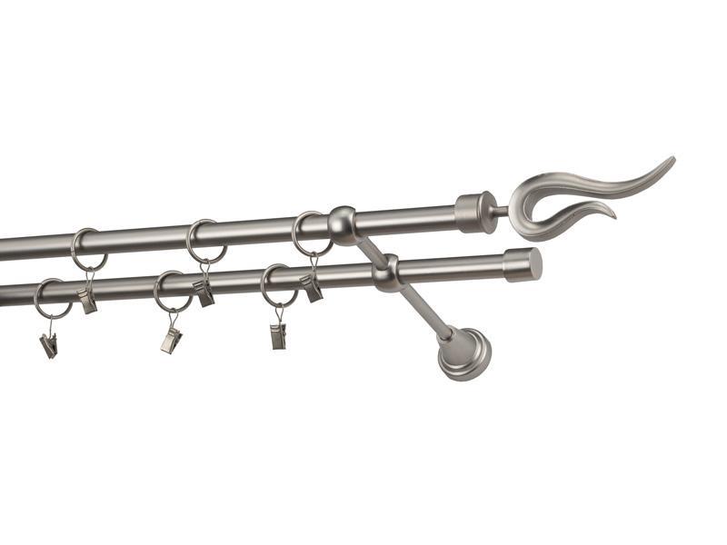 Dvojradová garniža s povrchovou úpravou - odtieň satin-nikel (matné striebro). Celokovové garniže s kvalitnou povrchovou úpravou - galvanické pokovovanie. Galvanické pokovovanie zabezpečuje vyššiu povrchovú tvrdosť, zvýšenú dolnosť voči poškriabaniu, hladký povrch. Dodávané sú v kompletoch.