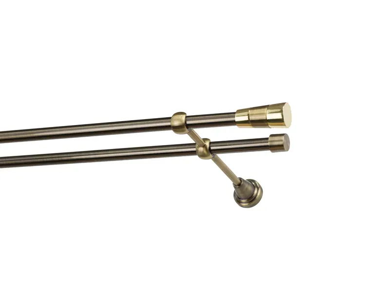 Dvojradová garniža s povrchovou úpravou - odtieň antik (matné zlato). Celokovové garniže s kvalitnou povrchovou úpravou - galvanické pokovovanie. Galvanické pokovovanie zabezpečuje vyššiu povrchovú tvrdosť, zvýšenú dolnosť voči poškriabaniu, hladký povrch. Dodávané sú v kompletoch.