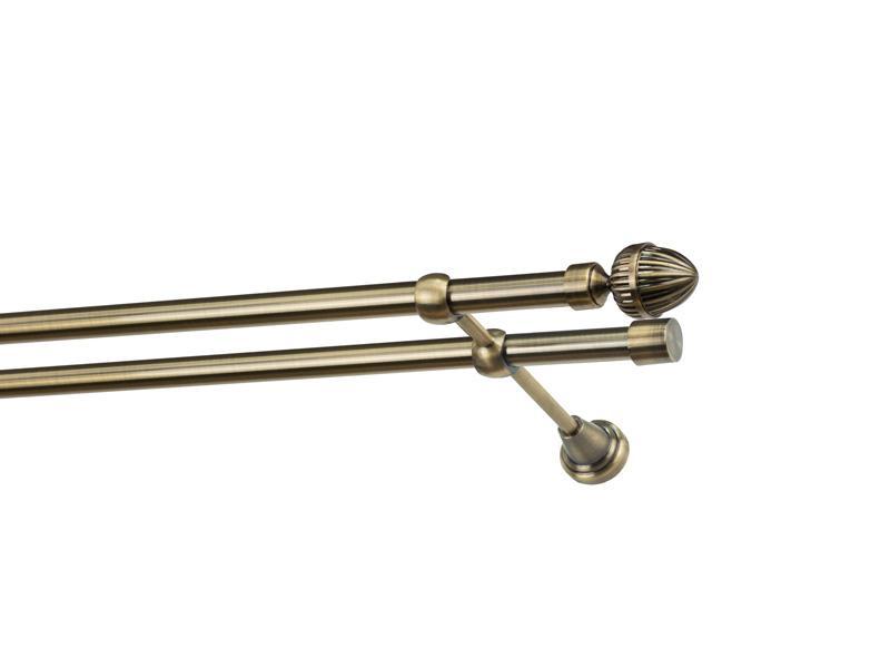 Dvojradová garniža s povrchovou úpravou - odtieň antik (matné zlato). Celokovové garniže s kvalitnou povrchovou úpravou - galvanické pokovovanie. Galvanické pokovovanie zabezpečuje vyššiu povrchovú tvrdosť, zvýšenú dolnosť voči poškriabaniu, hladký povrch. Dodávané sú v kompletoch.