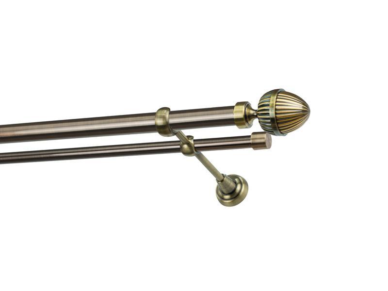 Dvojradová garniža s povrchovou úpravou - odtieň antik (matné zlato). Celokovové garniže s kvalitnou povrchovou úpravou - galvanické pokovovanie. Galvanické pokovovanie zabezpečuje vyššiu povrchovú tvrdosť, zvýšenú dolnosť voči poškriabaniu, hladký povrch. Dodávané sú v kompletoch.