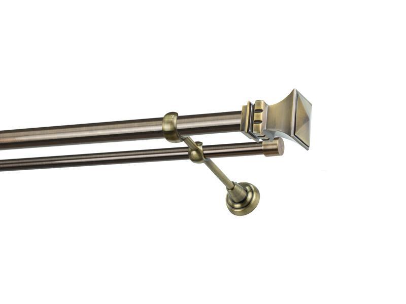 Dvojradová garniža s povrchovou úpravou - odtieň antik (matné zlato). Celokovové garniže s kvalitnou povrchovou úpravou - galvanické pokovovanie. Galvanické pokovovanie zabezpečuje vyššiu povrchovú tvrdosť, zvýšenú dolnosť voči poškriabaniu, hladký povrch. Dodávané sú v kompletoch.