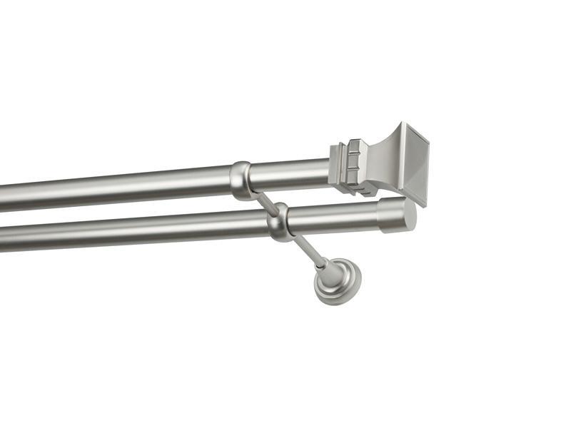 Dvojradová garniža s povrchovou úpravou - odtieň satin-nikel (matné striebro). Celokovové garniže s kvalitnou povrchovou úpravou - galvanické pokovovanie. Galvanické pokovovanie zabezpečuje vyššiu povrchovú tvrdosť, zvýšenú dolnosť voči poškriabaniu, hladký povrch. Dodávané sú v kompletoch.