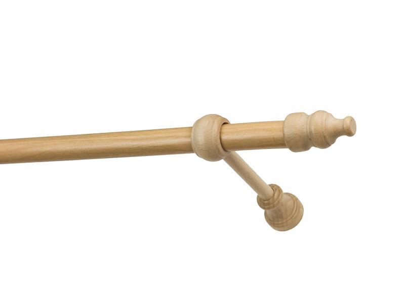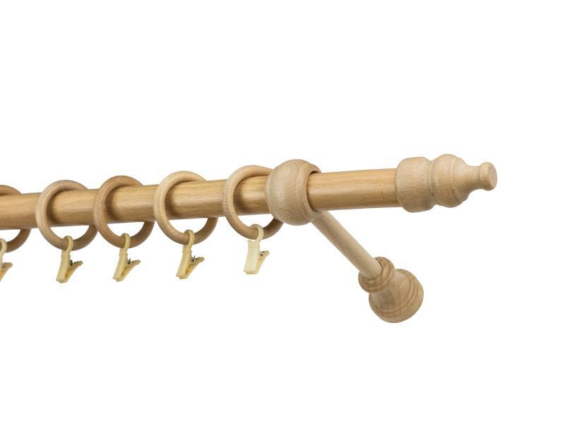 Koncovky, držiaky a krúžky sú drevené. Tyč je drevená (vyrábaná technológiou ako europrofily pre okna - čo eliminuje ohýbanie vplyvom tepla) a je potiahnutá odolnou drevoimitačnou fóliou. Dodávané sú v kompletoch.